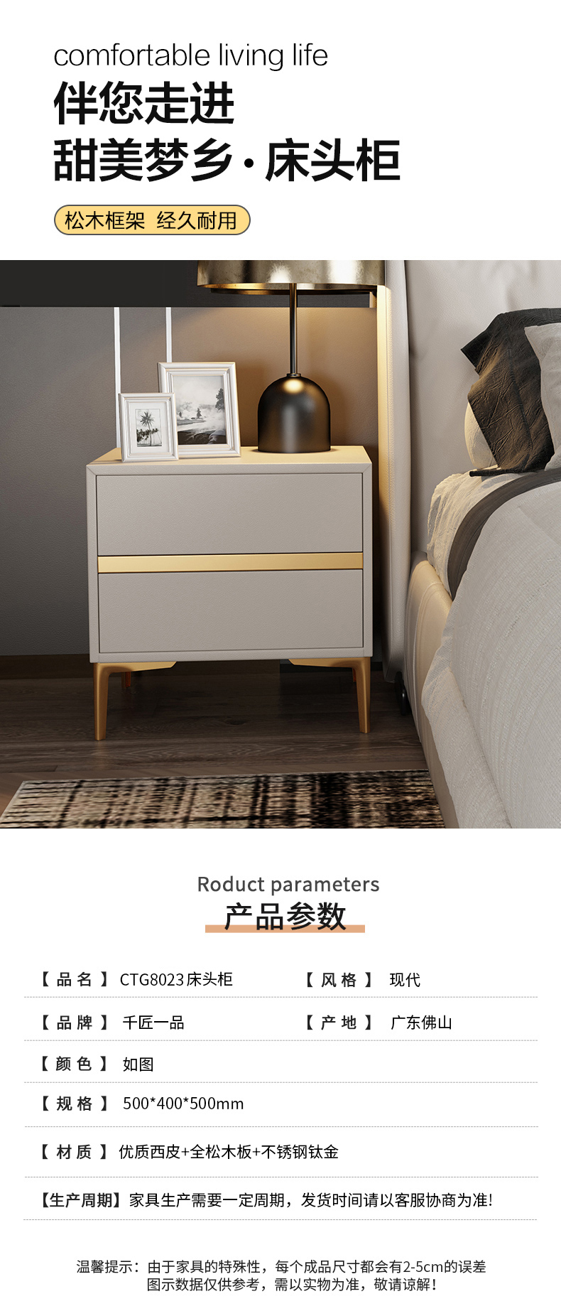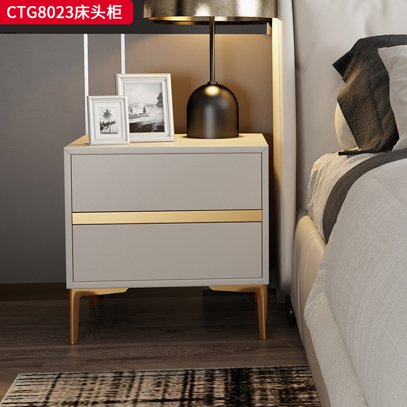 千匠一品 现代风格 优质西皮+全松木板+不锈钢钛金 时尚大气床头柜CTG8023-J
