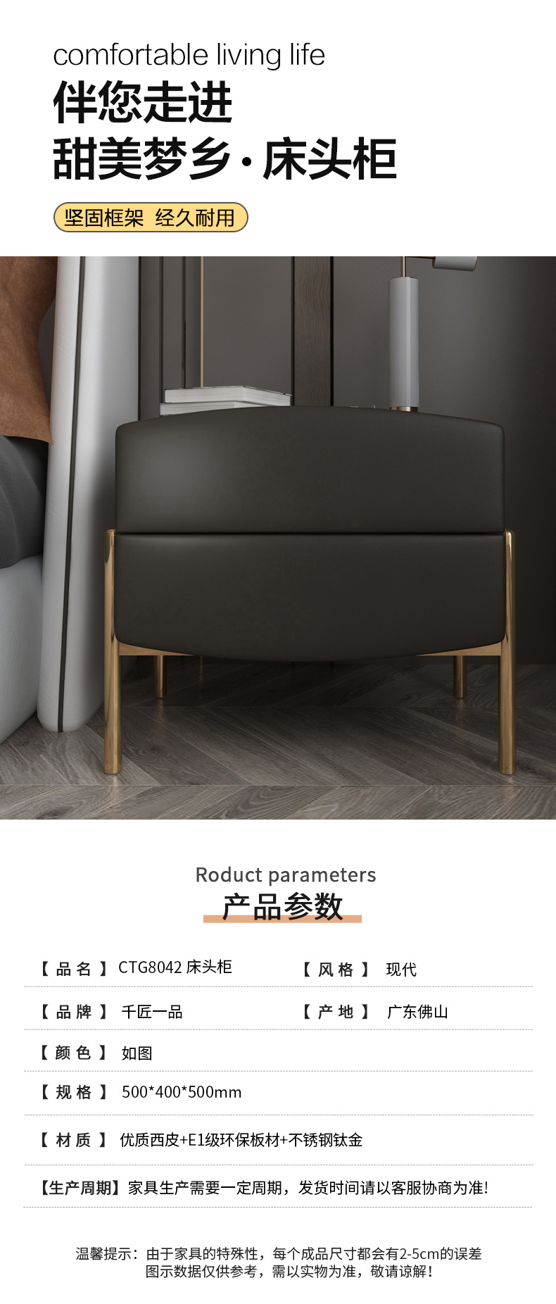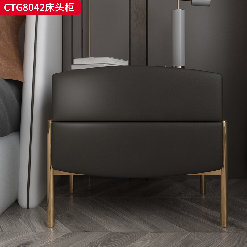 千匠一品 现代风格 优质西皮+E1级环保板材+不锈钢钛金 时尚大气床头柜CTG8042-J