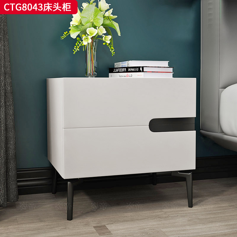 千匠一品 现代风格 优质西皮+E1环保板材+特色铁拉手+五金脚架 时尚大气床头柜CTG8043-J