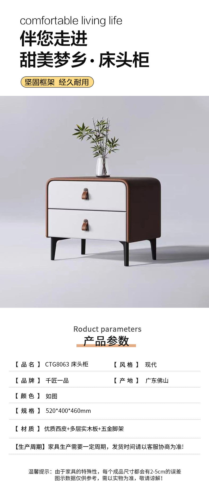 商品名称:千匠一品 现代风格 优质西皮+多层实木板+五金脚架 时尚大气床头柜CTG8063-J