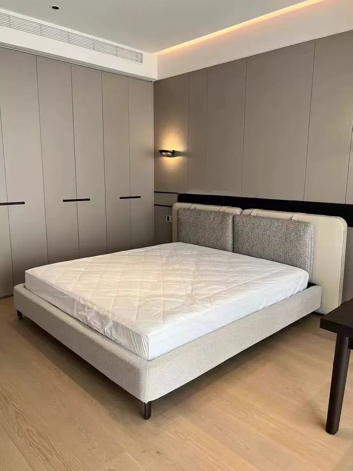 千匠一品 意式风格 高档棉麻面料+复古马鞍皮+实木框架 高档大气床 C-025-L