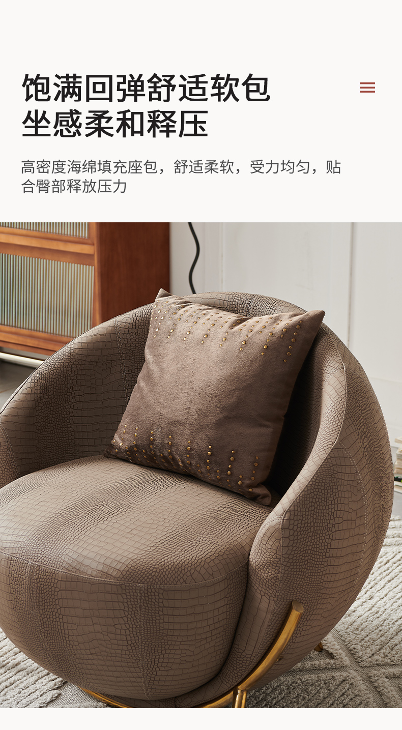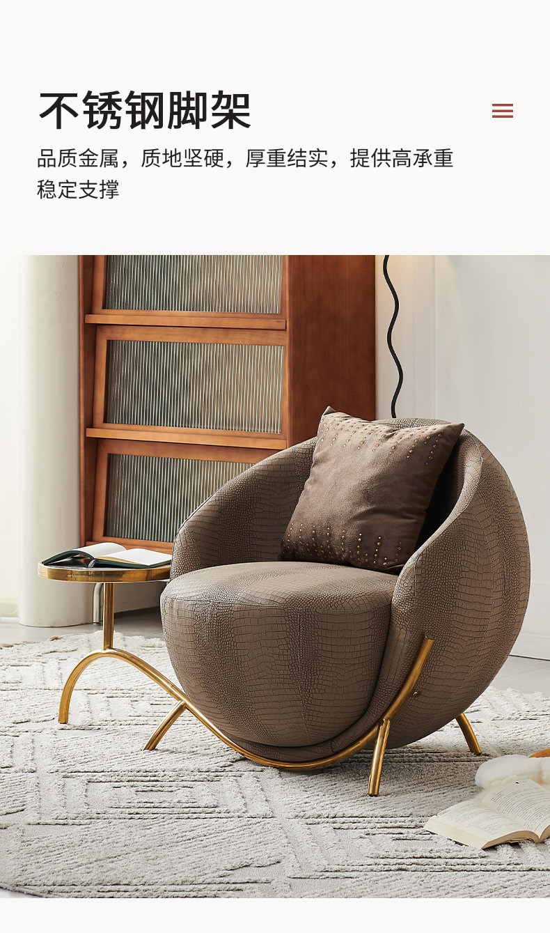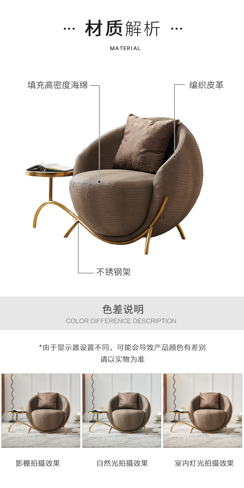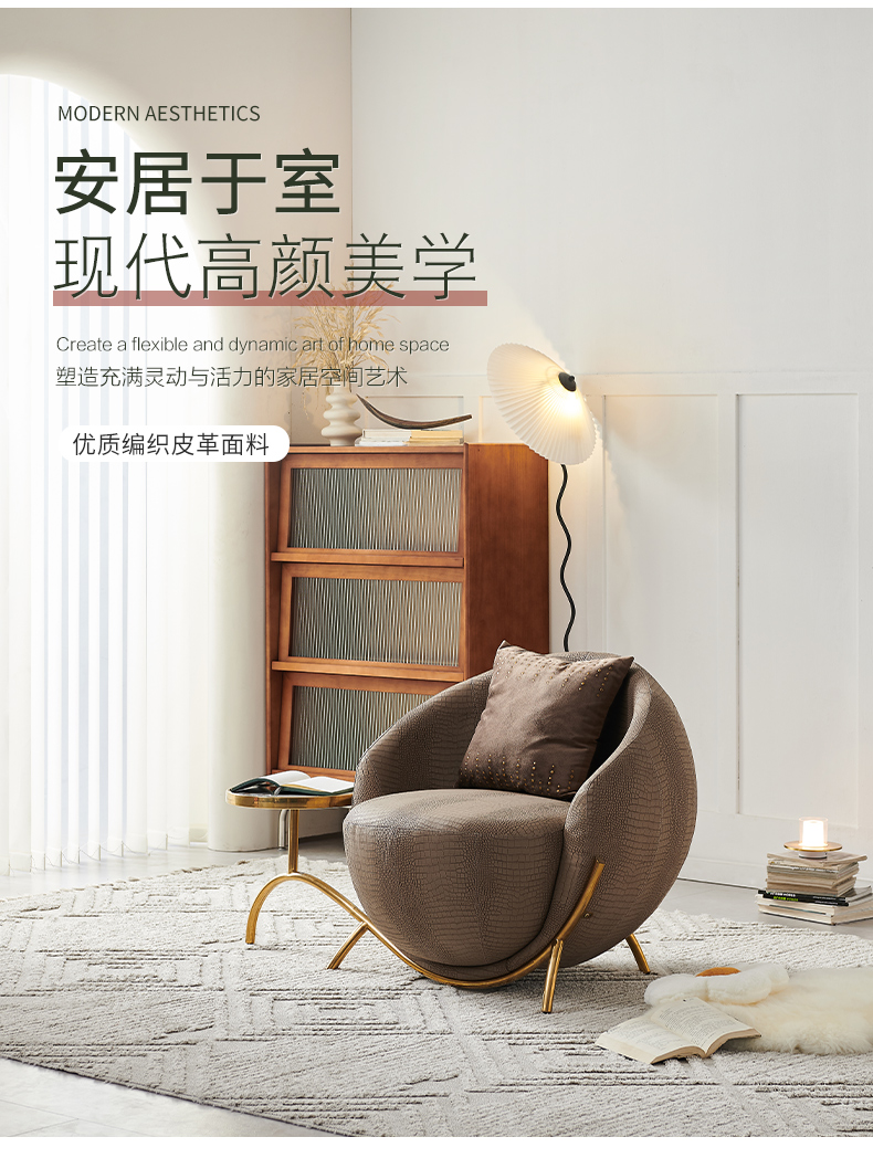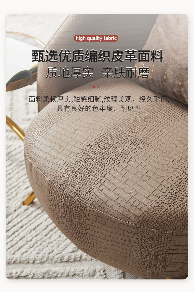 千匠一品 现代风格 编织皮革面料+高密度海绵+不锈钢架 简约时尚休闲椅8097-L