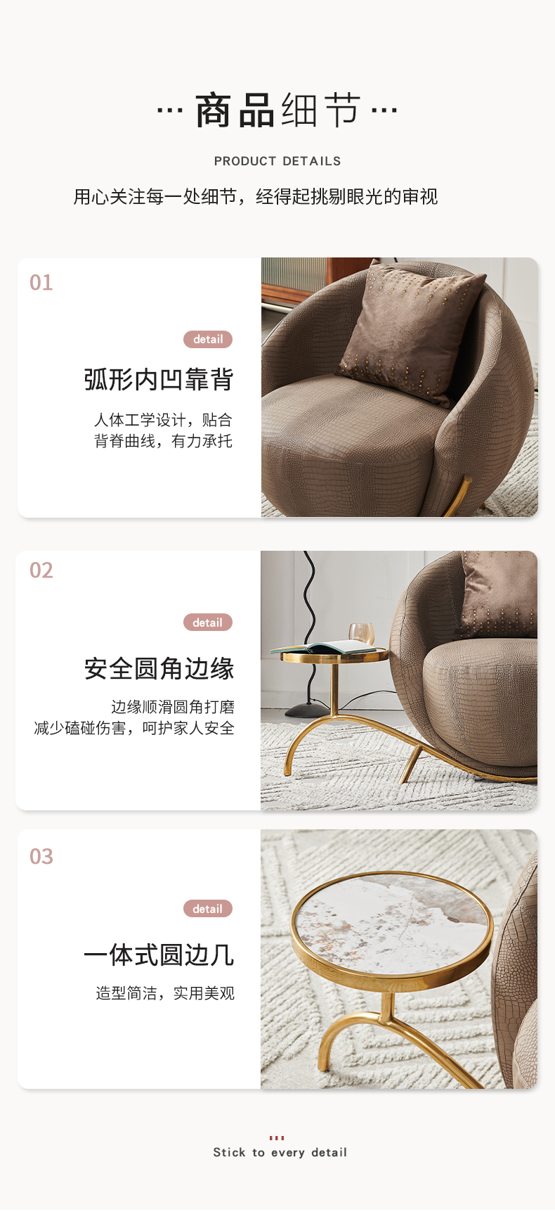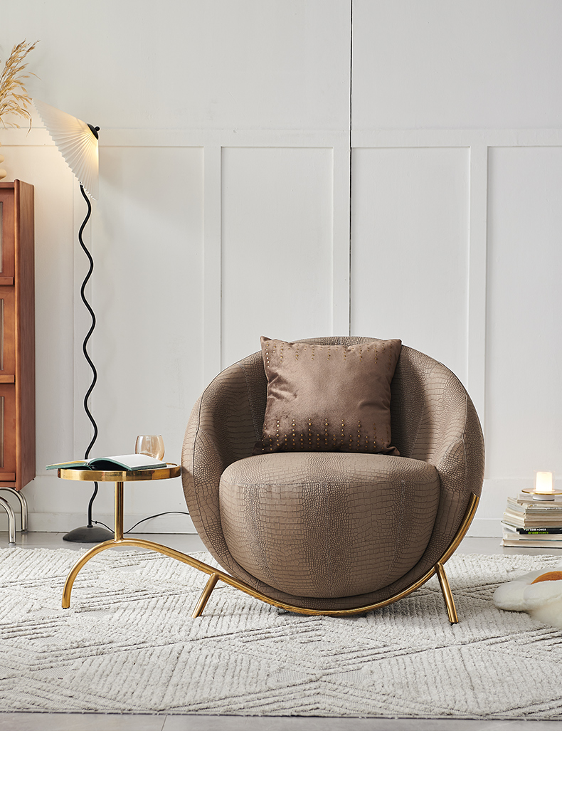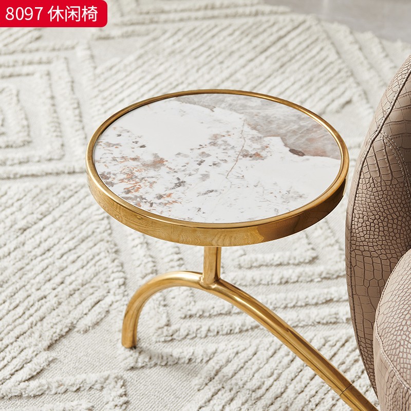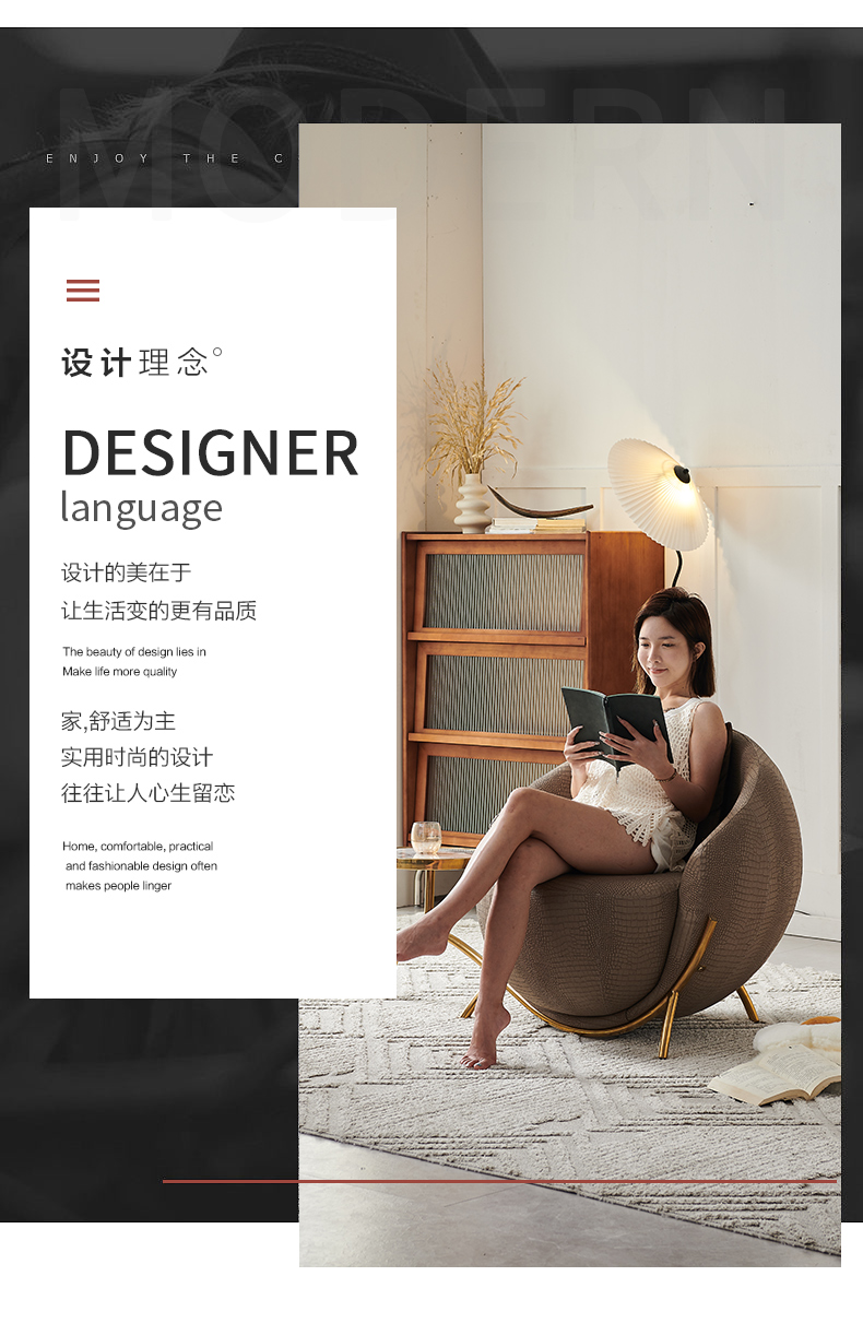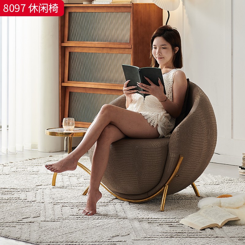 千匠一品 现代风格 编织皮革面料+高密度海绵+不锈钢架 简约时尚休闲椅8097-L
