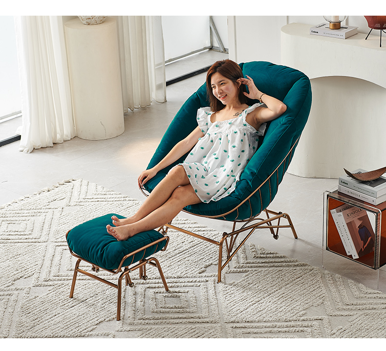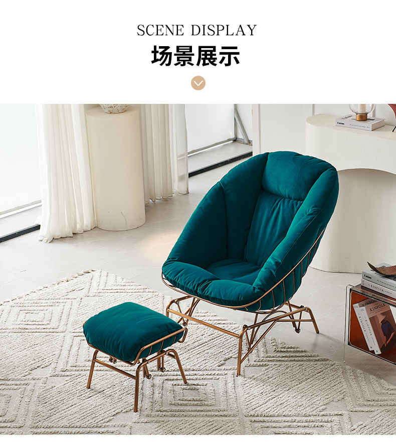 千匠一品 现代风格 天鹅绒+高密度海绵+白蜡木 简约时尚太阳花椅-L