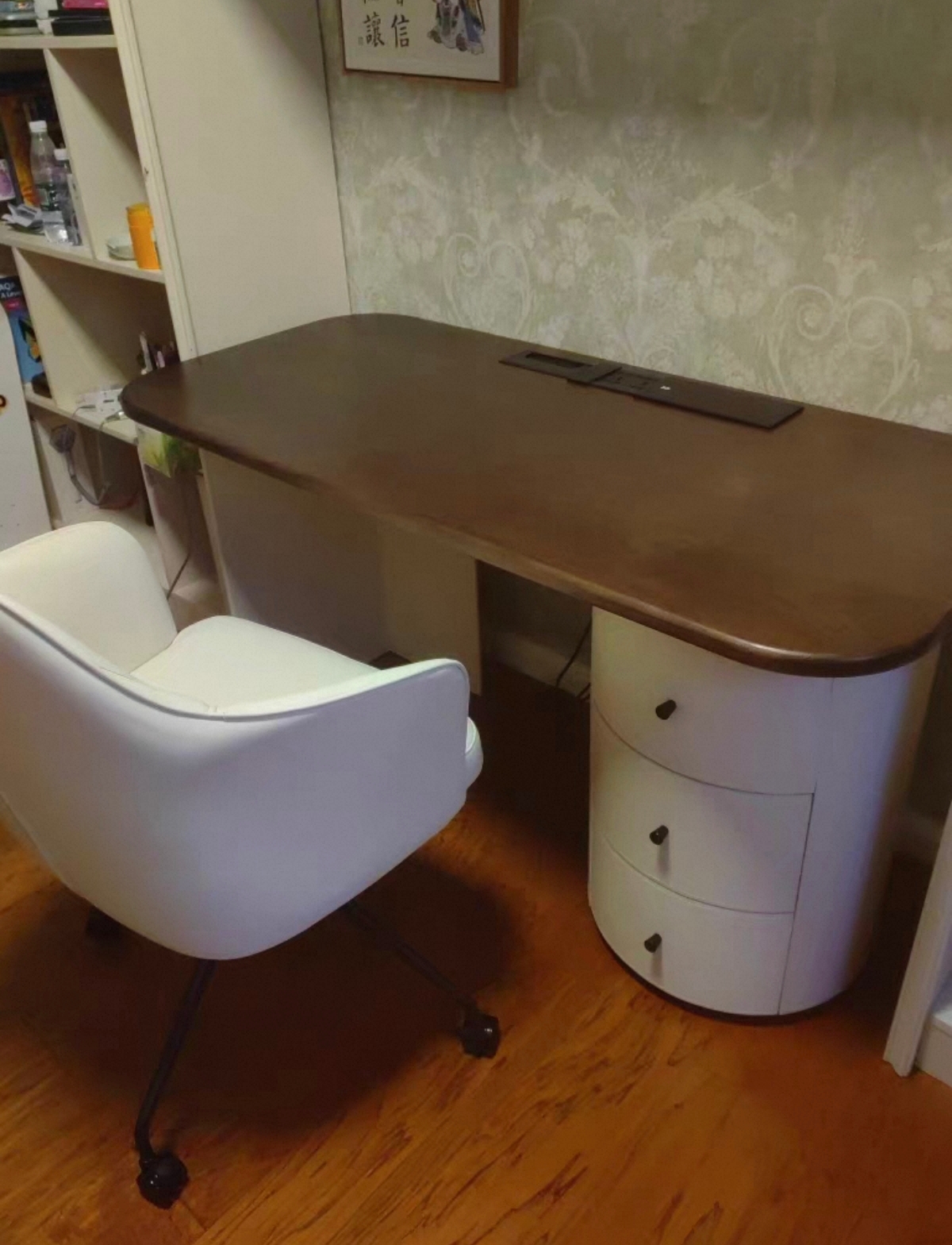 新买的书桌真是让人眼前一亮,外观设计简约流畅,色彩搭配得当,能够很好的融入家里的装修风格!