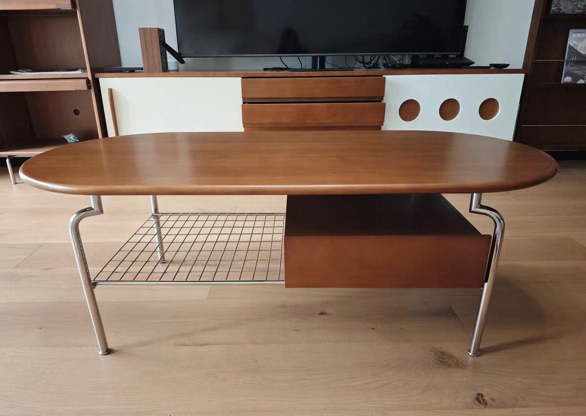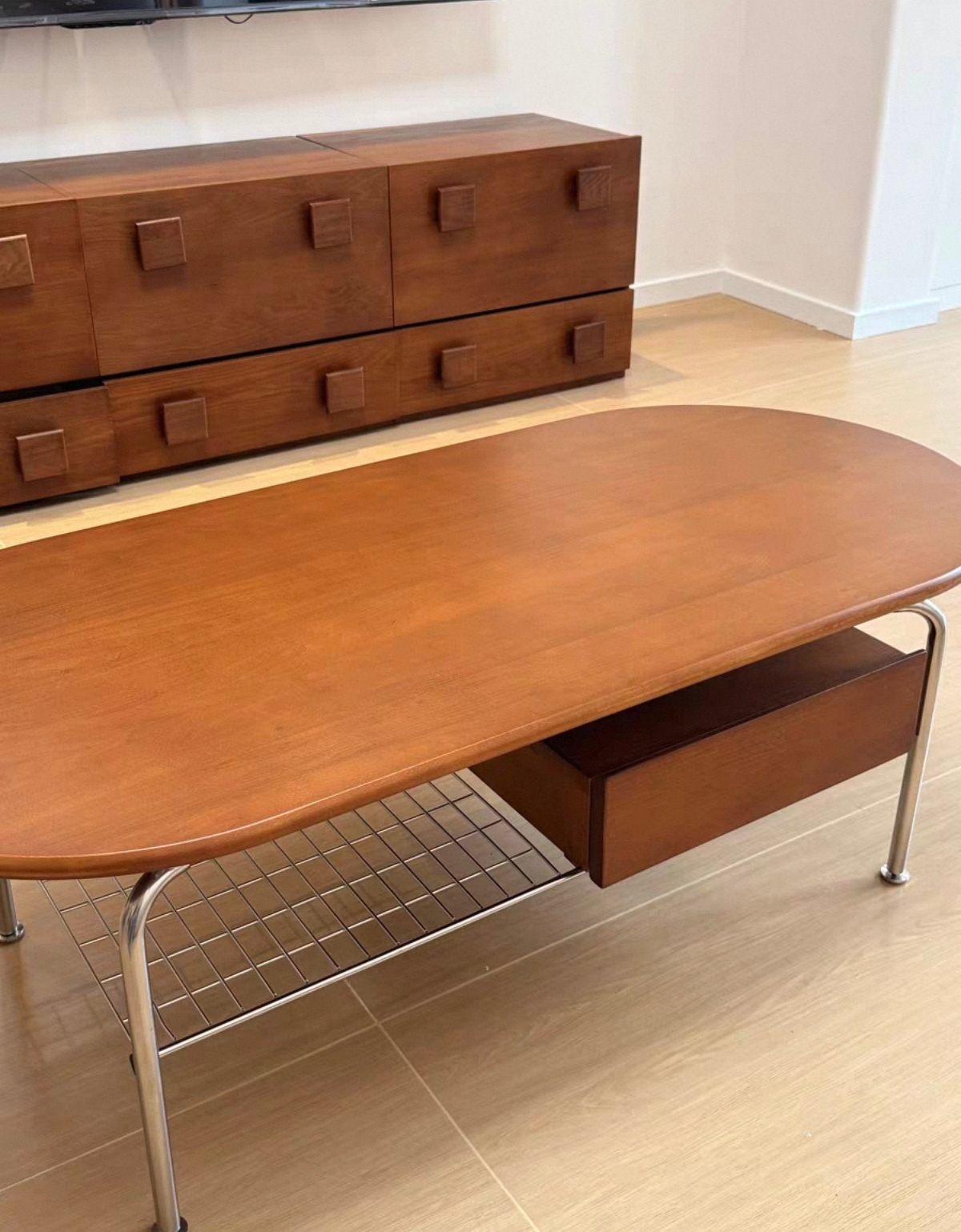 商品名称:千匠一品 中古风格 橡胶木实木+不锈钢底架 时尚优雅夏目茶几-L