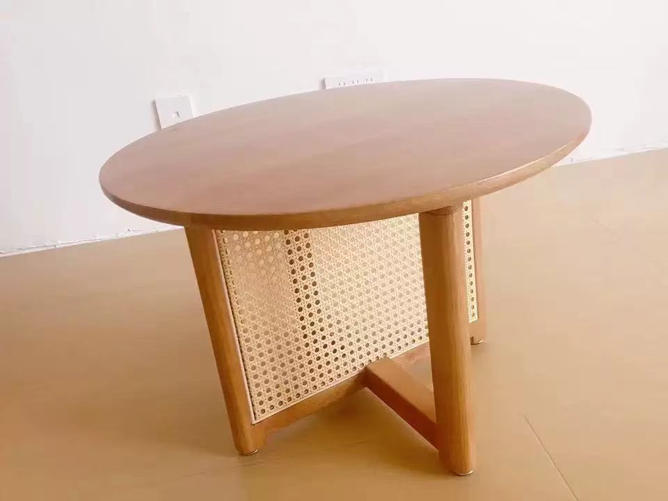 千匠一品 中古风格 红橡木+藤编 时尚优雅南风藤编茶几-J