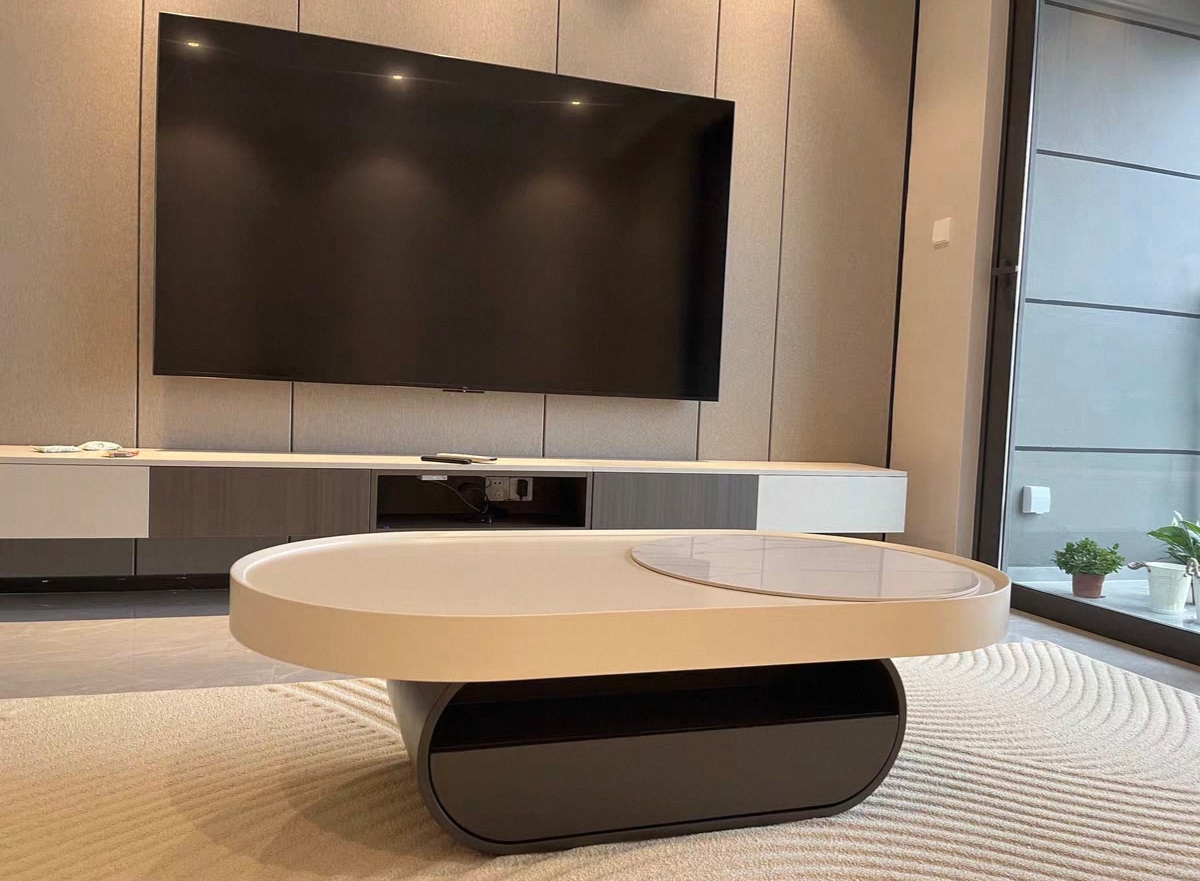 千匠一品 中古奶油风现代简约 环保板材+岩板+烤漆工艺+纤维板贴木皮 简约大气茶几G645-L