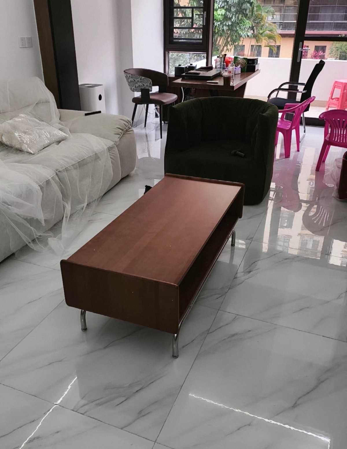 茶几很漂亮,材质做工都很好,框架结构稳定,整体质感很好,没有什么难闻的味道