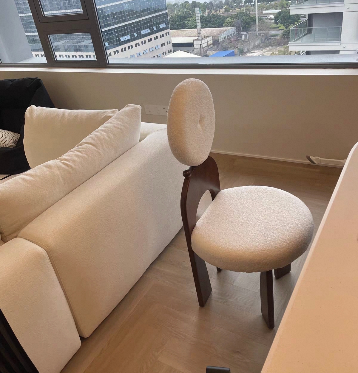 千匠一品 中古奶油风现代简约 橡木+羊羔绒+高密度海绵 时尚优雅餐椅L15-L