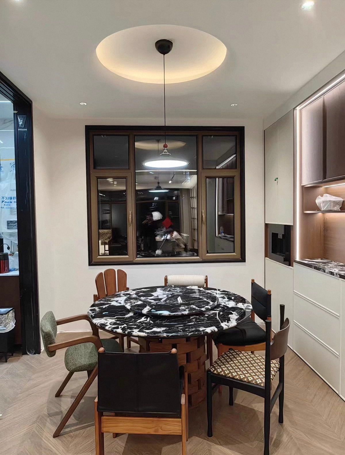 这款餐桌真的很满意,外观高端大气,放在客厅里瞬间提升了整体档次。大理石材质很耐用,平时吃饭、办公都很方便,清洁起来也特别轻松。