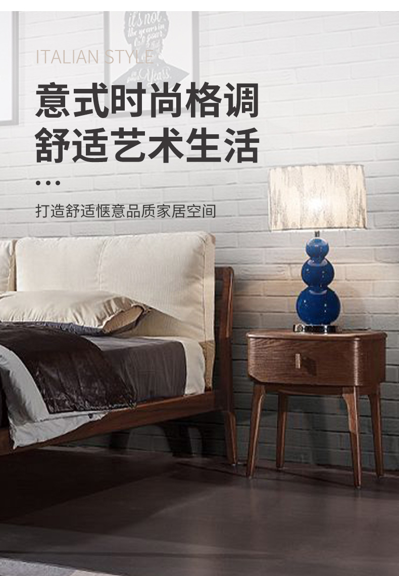 千匠一品 意式风格 优质棉麻布+白蜡木实木+高密度海绵+环保油漆 时尚大气床BD1309 床头柜N305-L