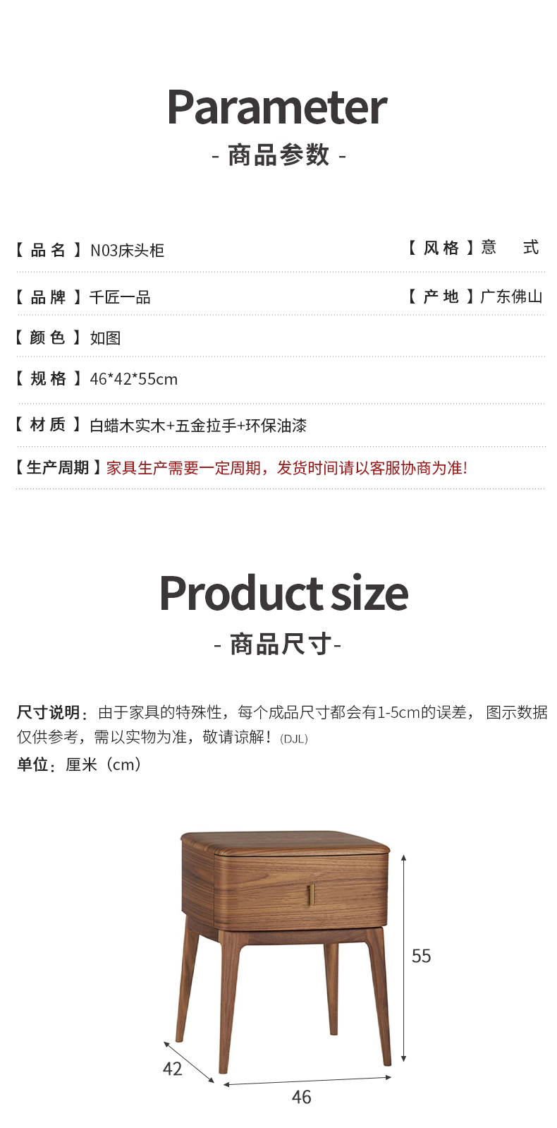 商品名称:千匠一品 意式风格 白蜡木实木+五金拉手+环保油漆 时尚大气床头柜N03-L