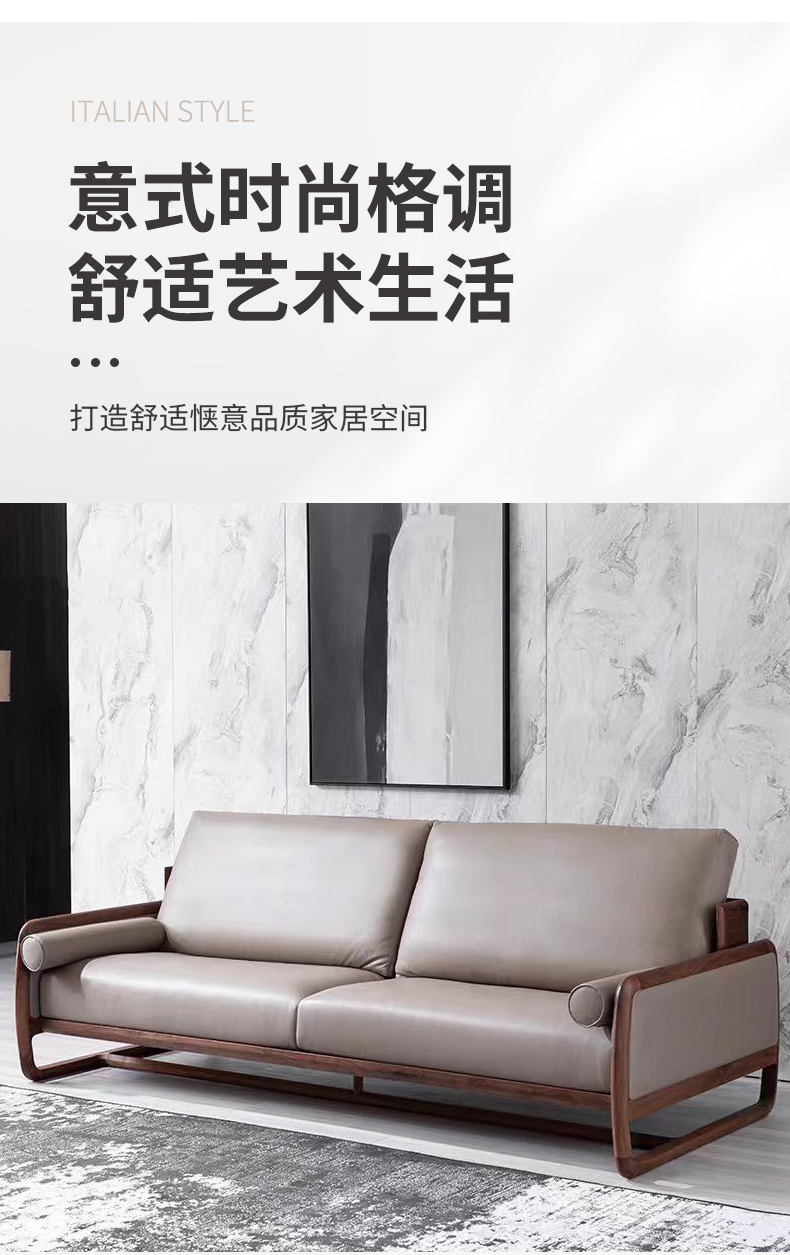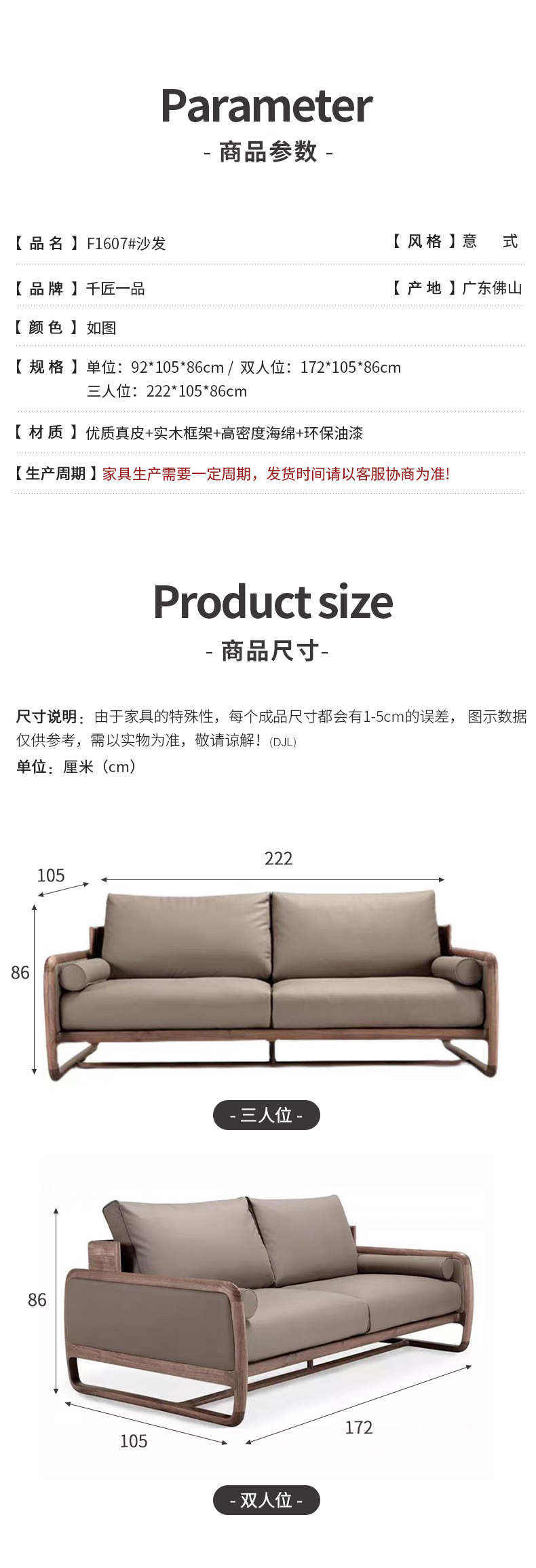 千匠一品 意式风格 优质真皮+实木框架+高密度海绵+环保油漆 时尚大气沙发F1607-L