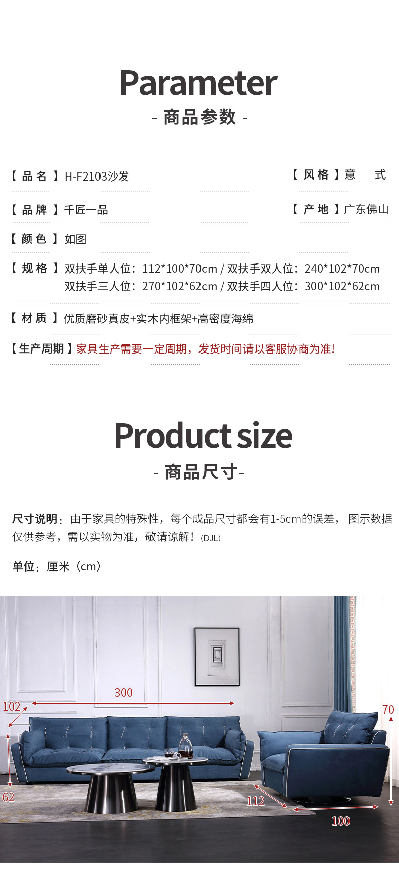 商品名称:千匠一品 意式风格 网红款沙发索伦托沙发 优质磨砂真皮+实木内框架+高密度海绵 时尚大气沙发H-F2103-L