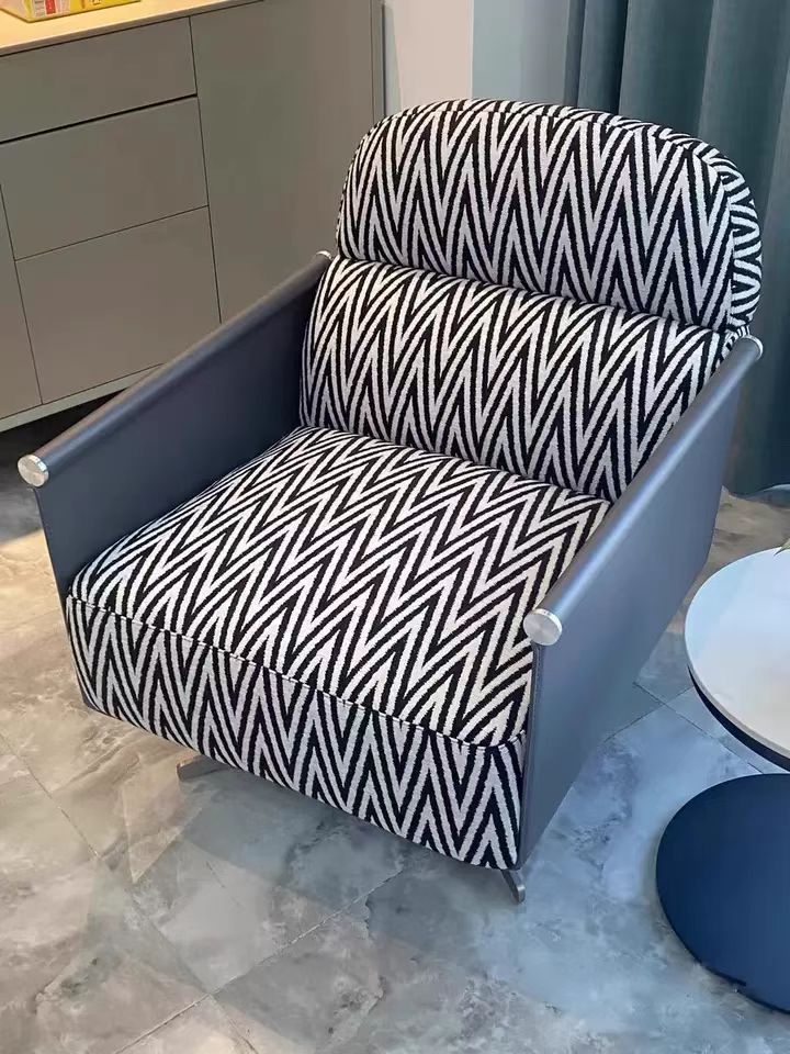 千匠一品 现代风格 布艺面料+马鞍皮+高密度海绵+不锈钢脚架 时尚大气单椅F088-J
