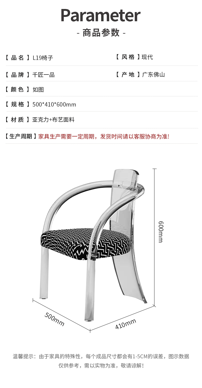 商品名称:千匠一品 现代风格 亚克力+布艺面料 时尚大气椅子L19-L