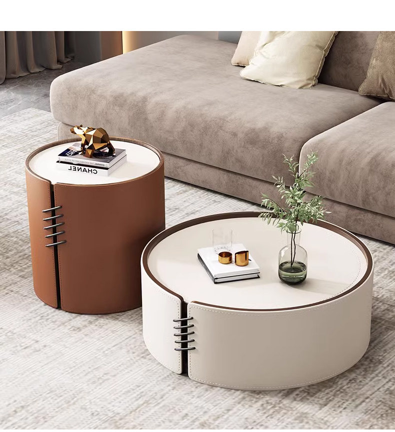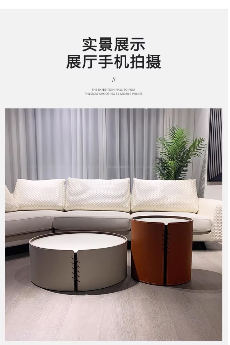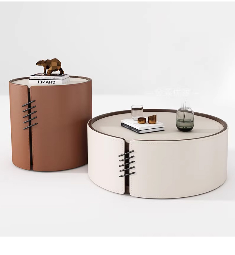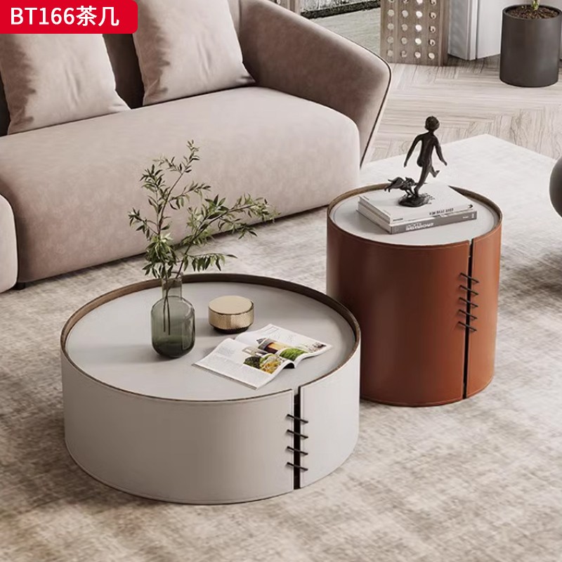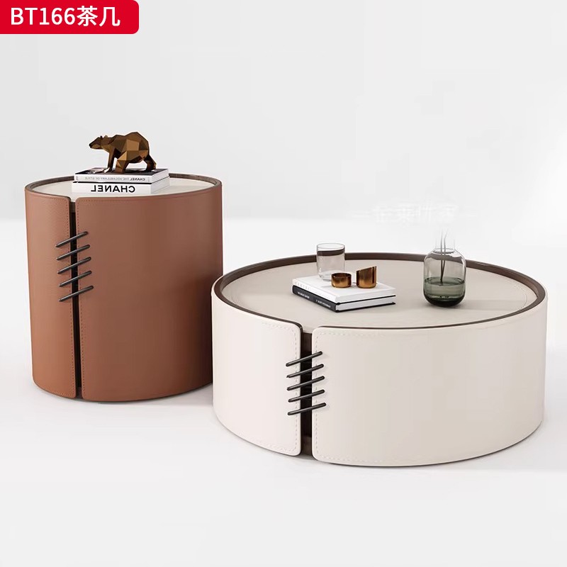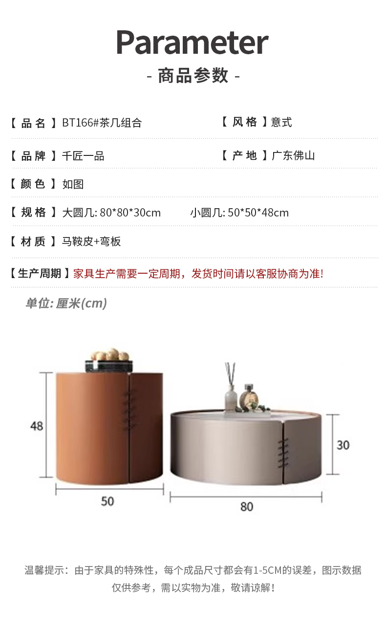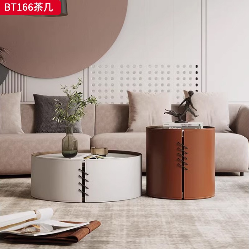 千匠一品 意式风格 马鞍皮+弯板 时尚大气茶几组合BT166-L