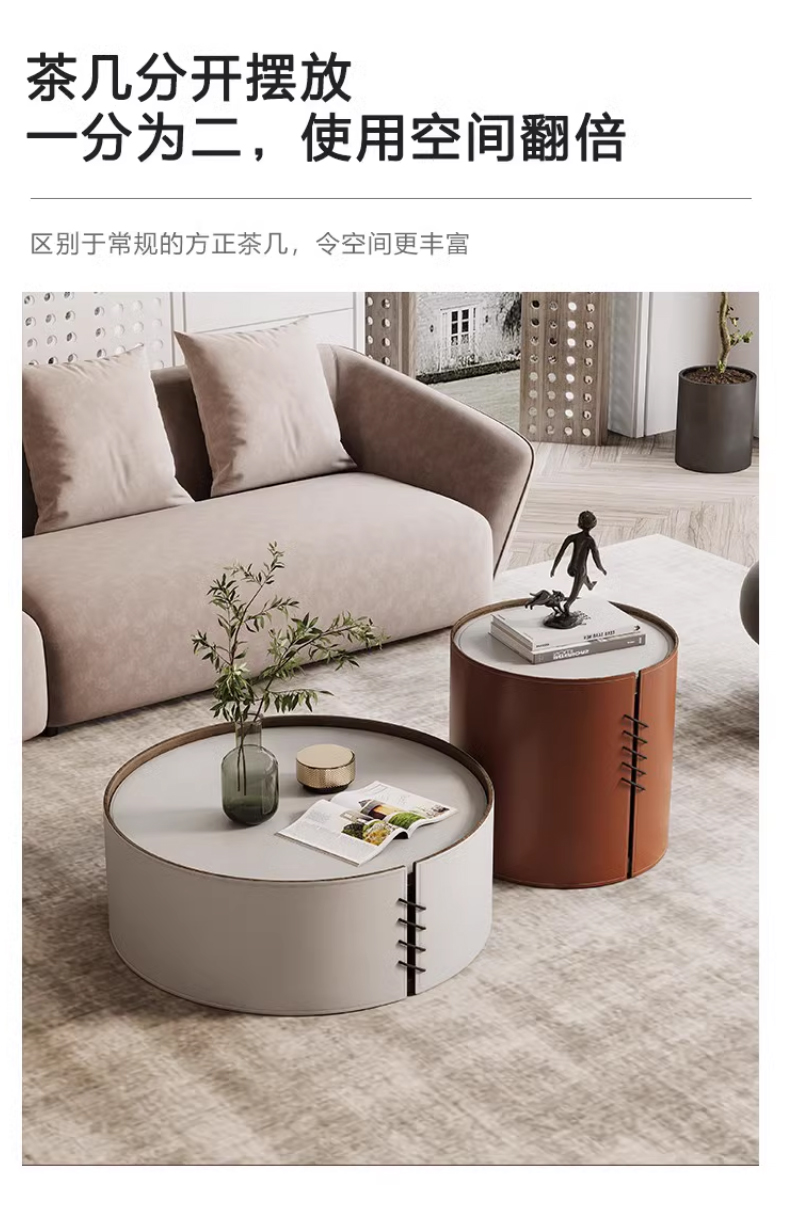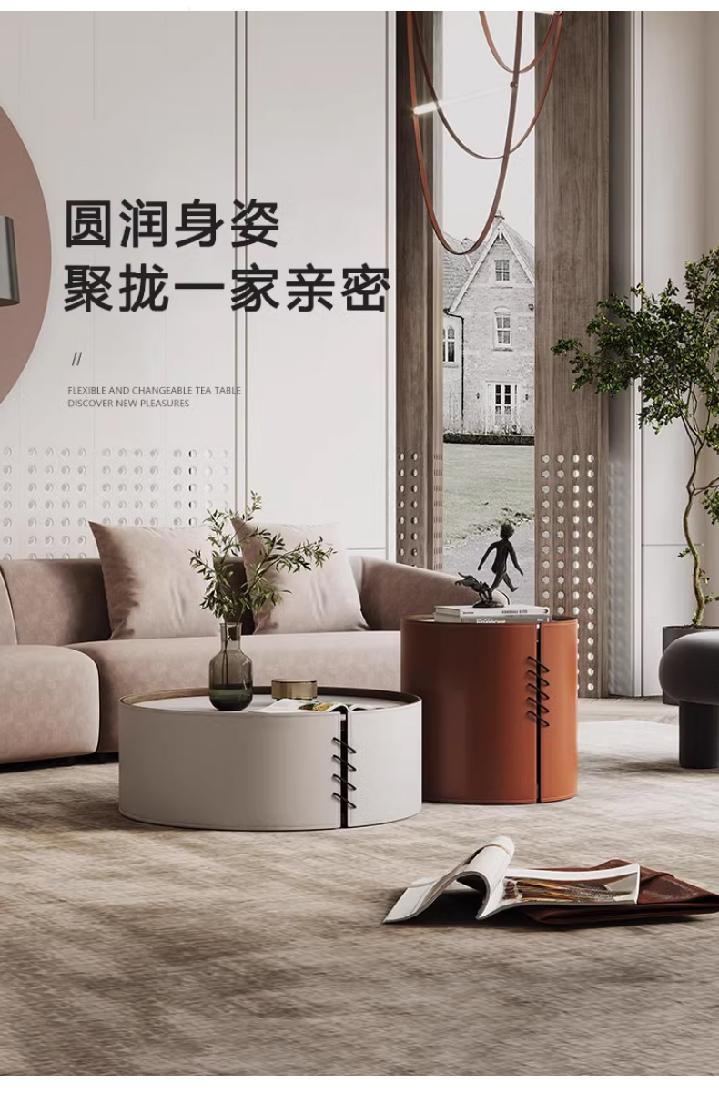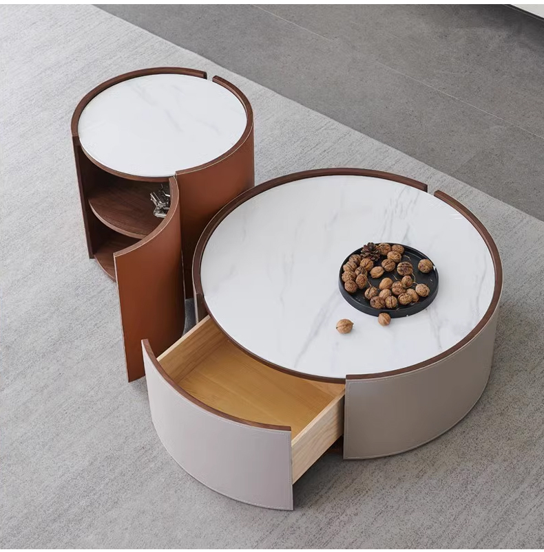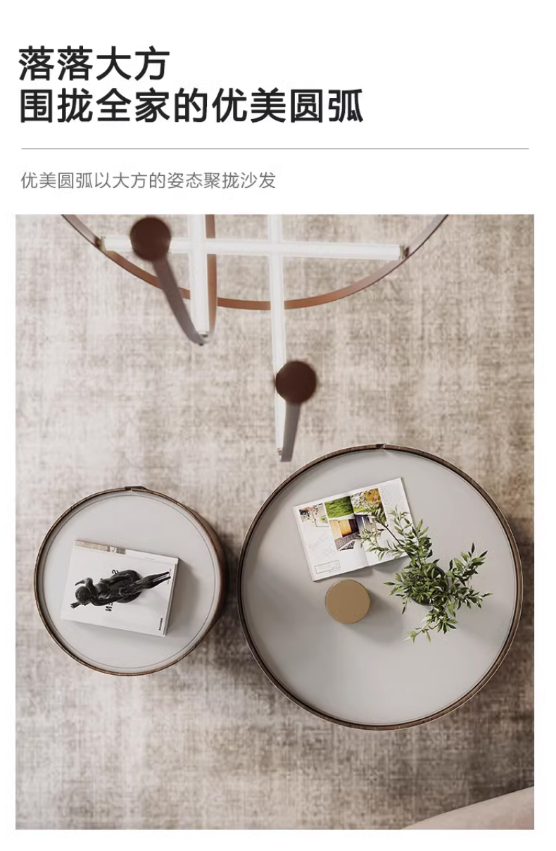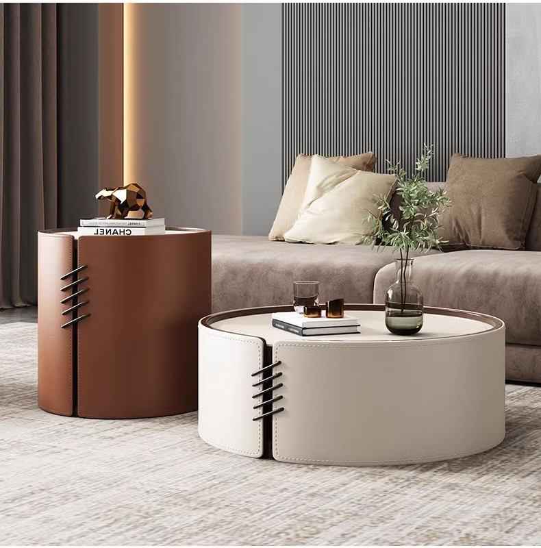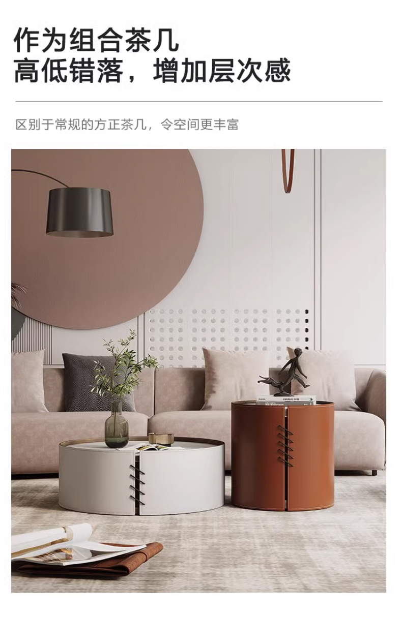 千匠一品 意式风格 马鞍皮+弯板 时尚大气茶几组合BT166-L