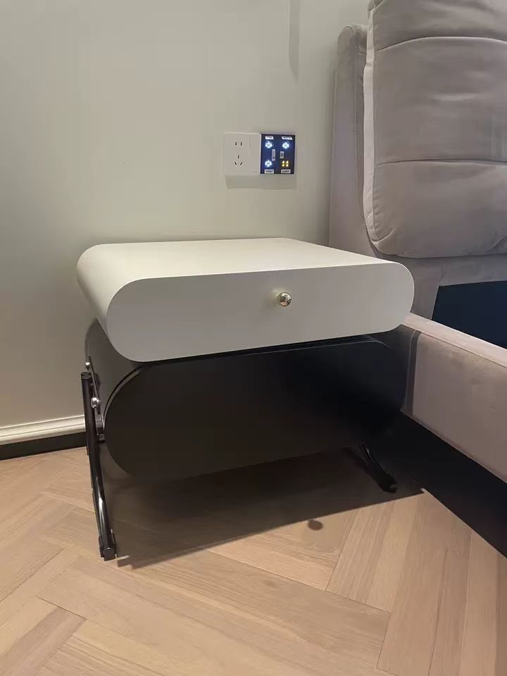 这款床头柜很有设计感 白色加黑色的配色看起来很感觉 挺漂亮的