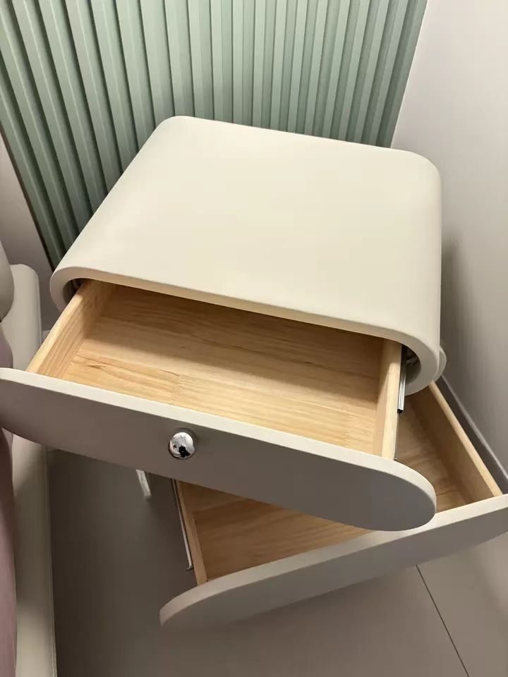 千匠一品 意式风格 E1级环保板+哑光烤漆+实木抽屉+缓冲导轨+不锈钢底座 时尚极简床头柜ST172-J