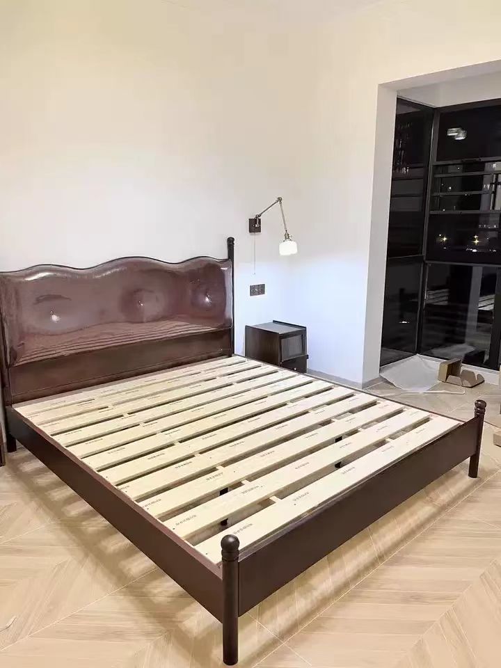 △千匠一品 美式风格金丝檀木框架+油蜡仿真皮+海绵1.8M床9812-C