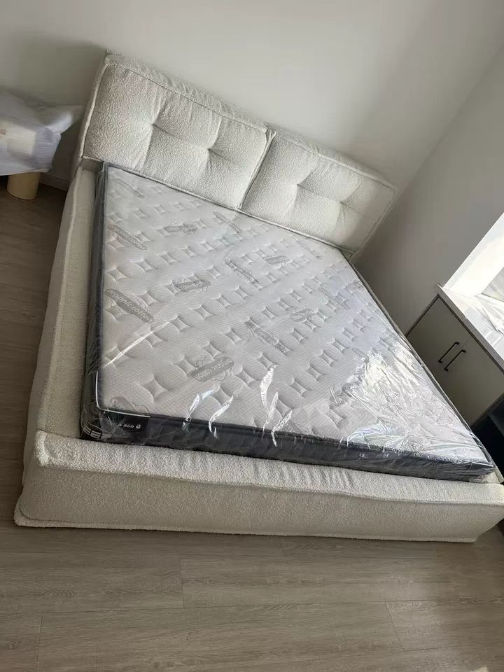 ●千匠一品 意式风格 进口俄罗斯松木框架+3D静音实木床板 时尚大气奶油吐司床-L