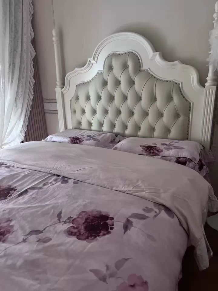 ●千匠一品 法式风格 进口实木框架+舒适饱满超纤皮软靠+全实木稳固床板+环保放心漆 时尚华丽床0115B-J