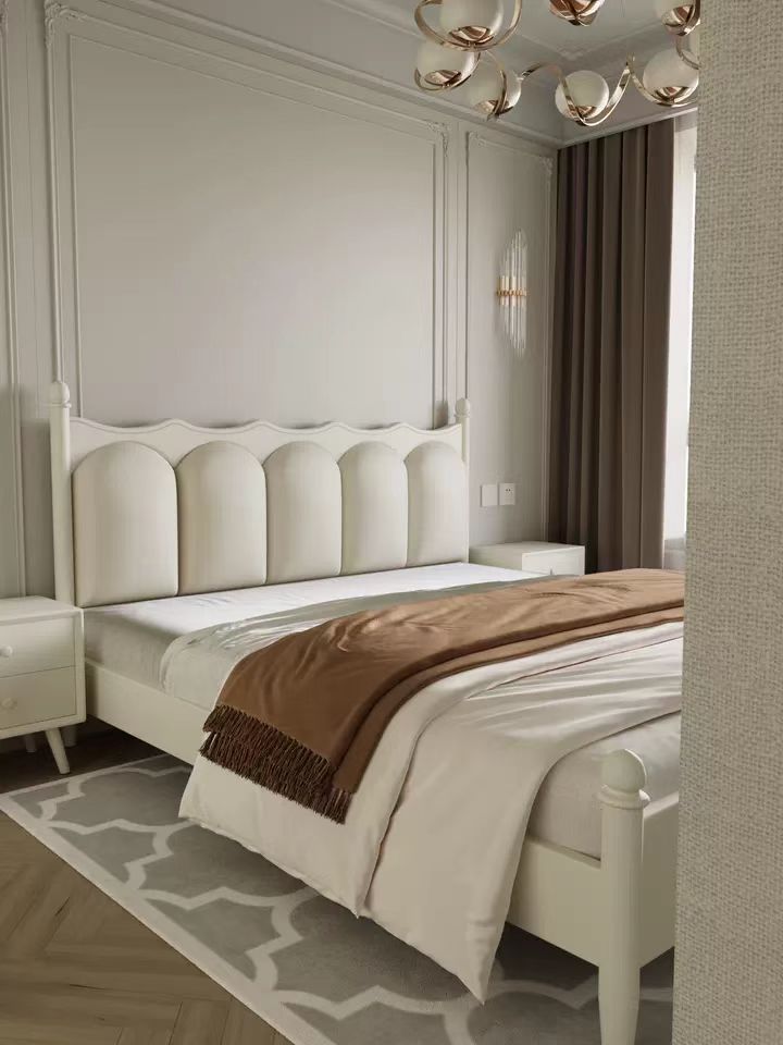 ●千匠一品 美式风格 头层牛皮软靠+高回弹海绵+全松木静音床板 时尚经典床331-J