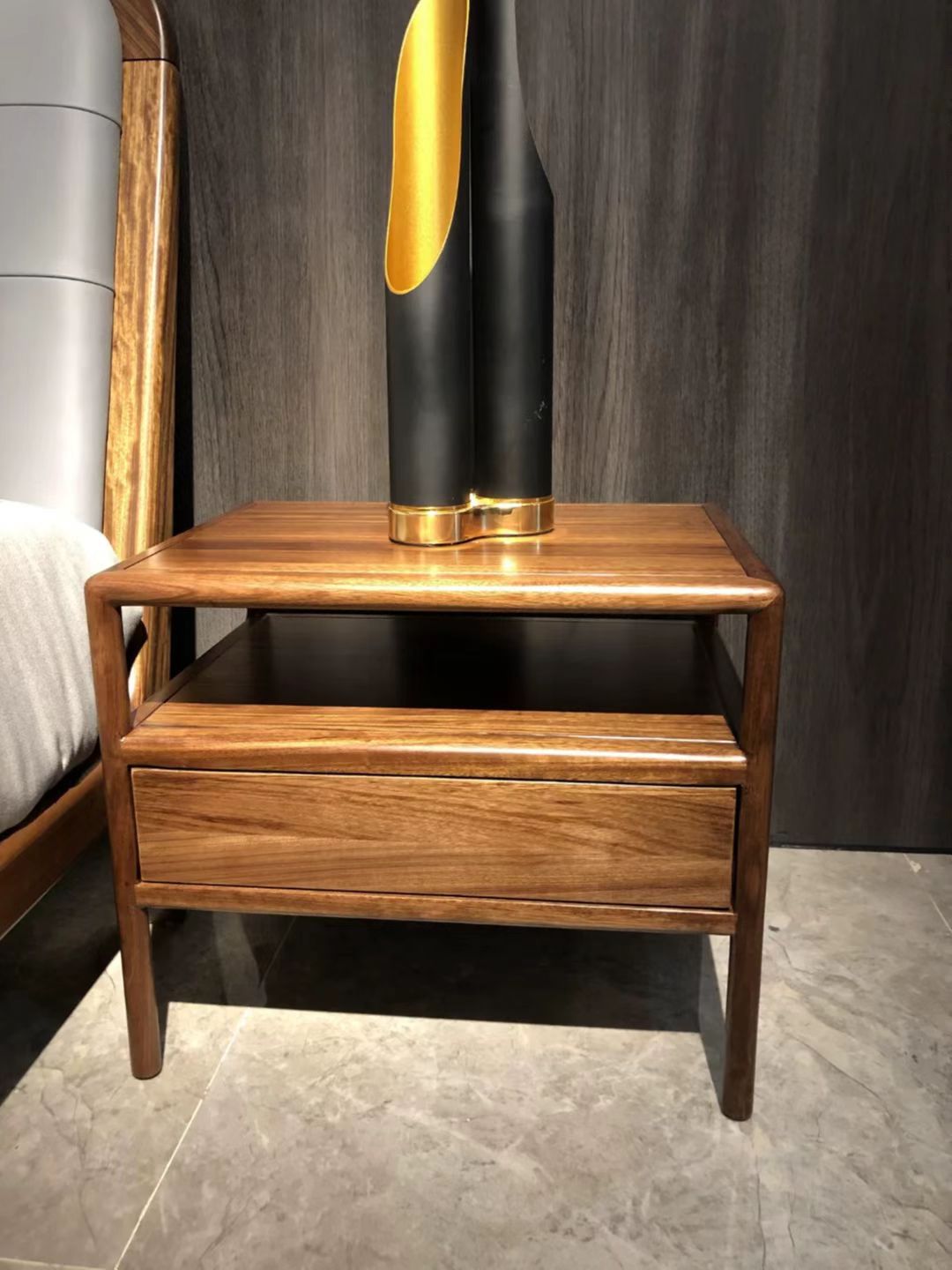 商品名称:●千匠一品 中式风格 黑胡桃木 北美白蜡木+实木框架+环保木蜡油 时尚优雅床头柜925665-J
