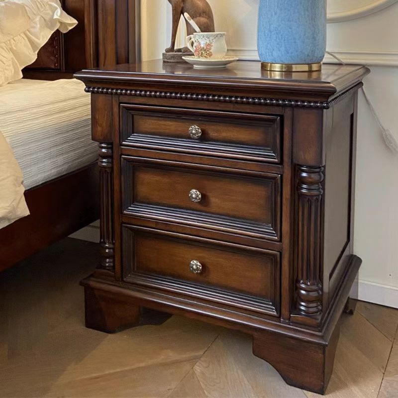 ●千匠一品 美式风格 金丝柚木+锌铜金拉手+全实木抽屉+环保水性漆 时尚古典床头柜802-J