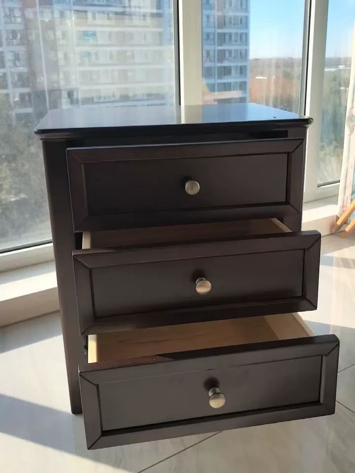 床头柜很漂亮,很有分量,又很大气哦。真的是实木的!