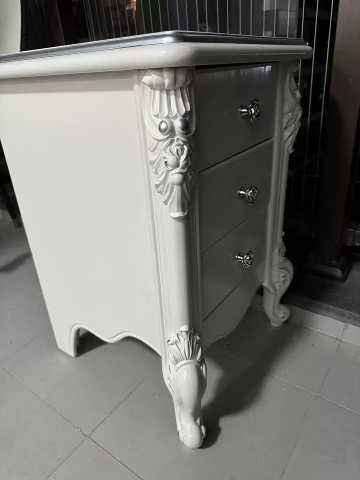 商品名称:●千匠一品 法式风格 E1级高密度板+精细雕花+环保油漆+塑钢扎实柜脚+精美金属拉手 经典优雅床头柜JnXmwHeP-J