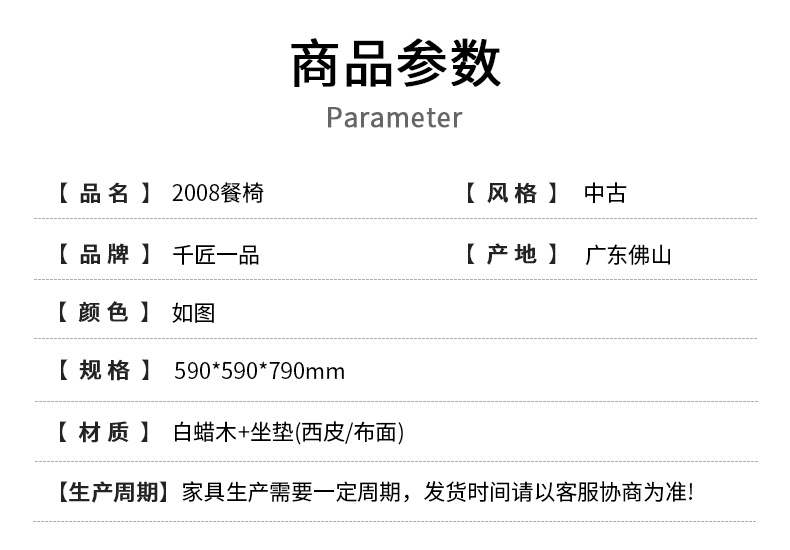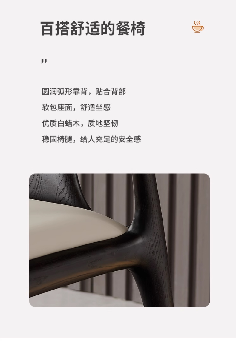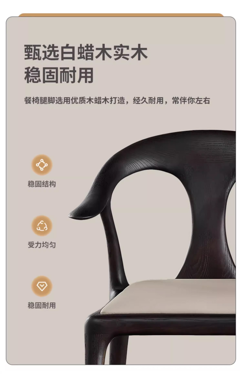 商品名称:千匠一品 中古风格 白蜡木+坐垫(西皮 布面)时尚大气餐椅2008-L