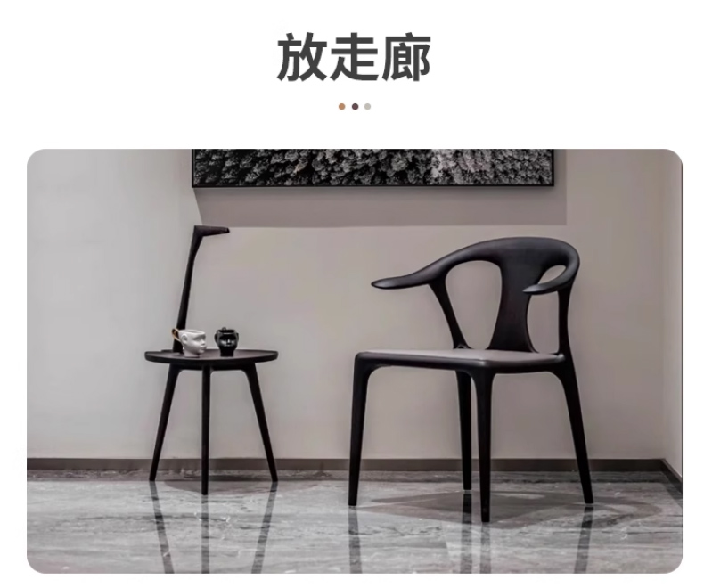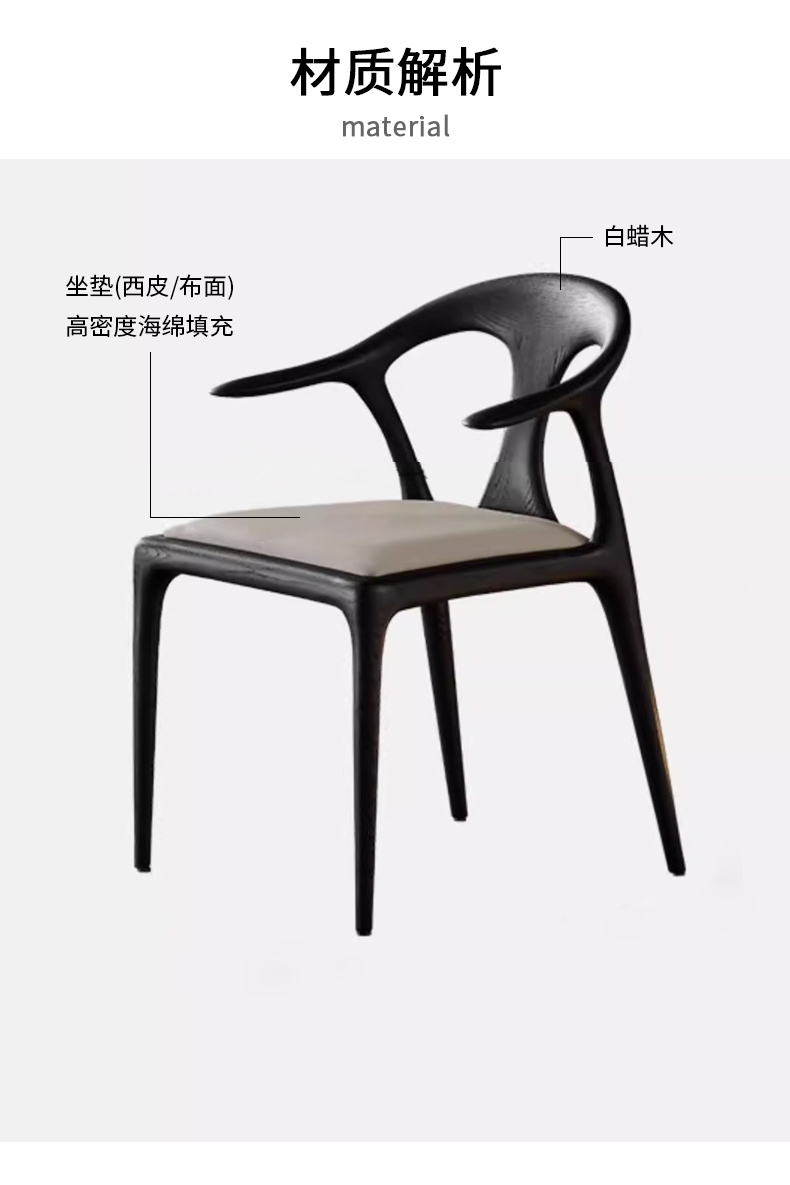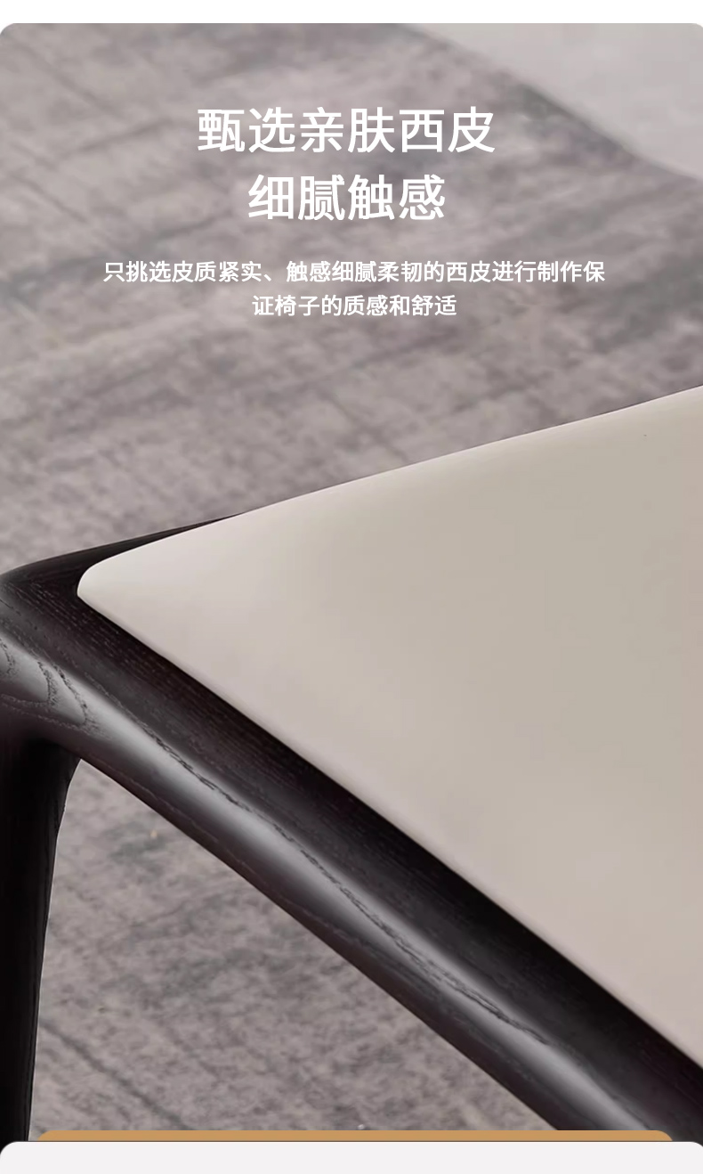 千匠一品 中古风格 白蜡木+马鞍皮 时尚优雅休闲椅CY2179-J