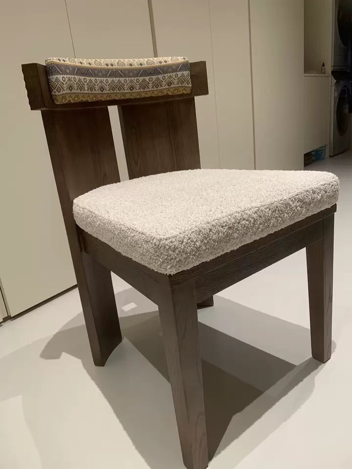 千匠一品 中古风格 白蜡木+绒布坐垫(布艺 西皮)+高密度海绵 时尚优雅餐椅2177-L