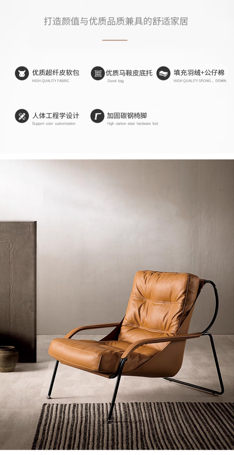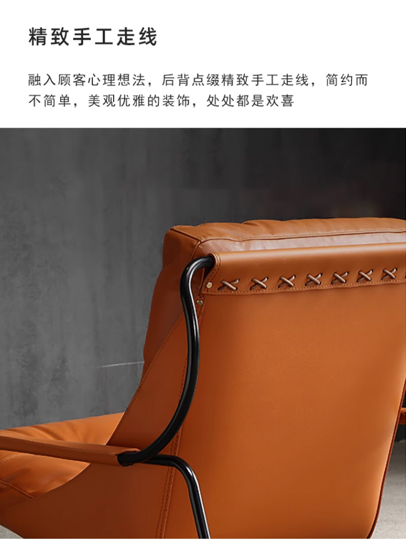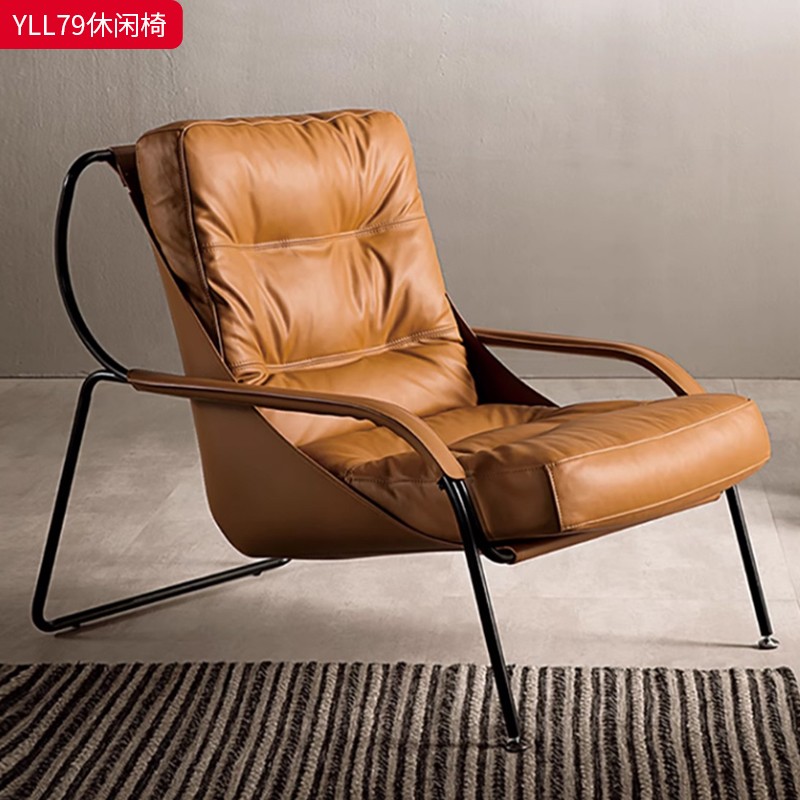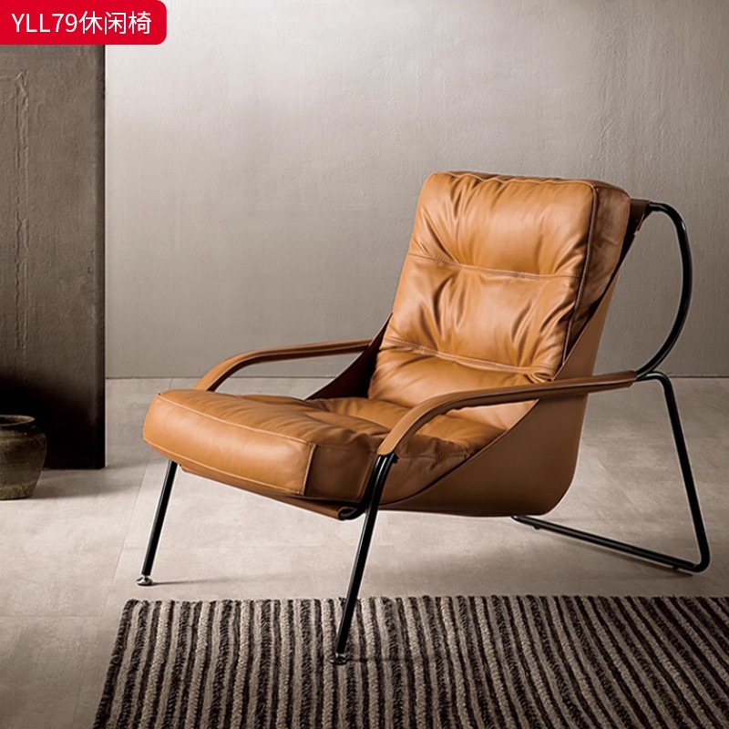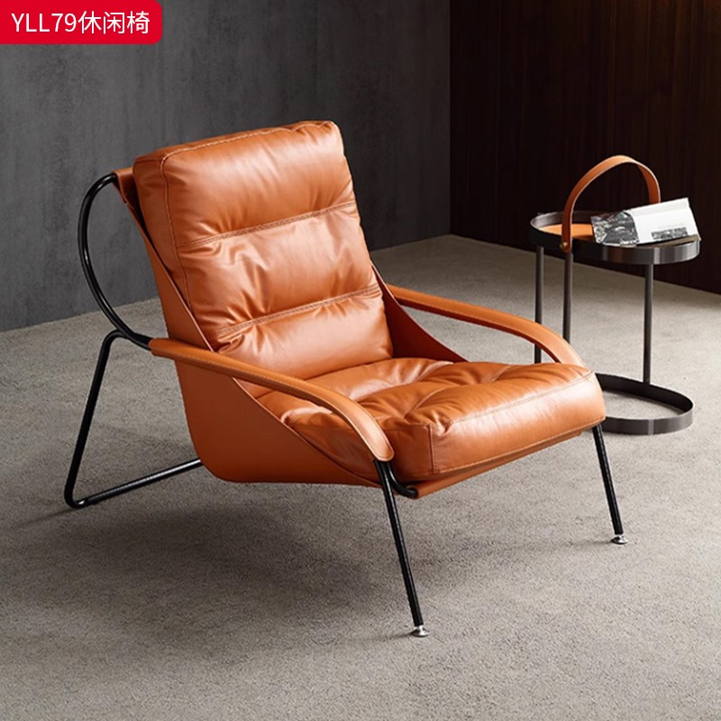 商品名称:千匠一品 意式极简风格 优质超纤皮+马鞍皮+填充羽绒公仔棉+碳素钢脚架 时尚优雅休闲椅YLL79-L