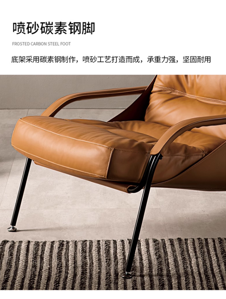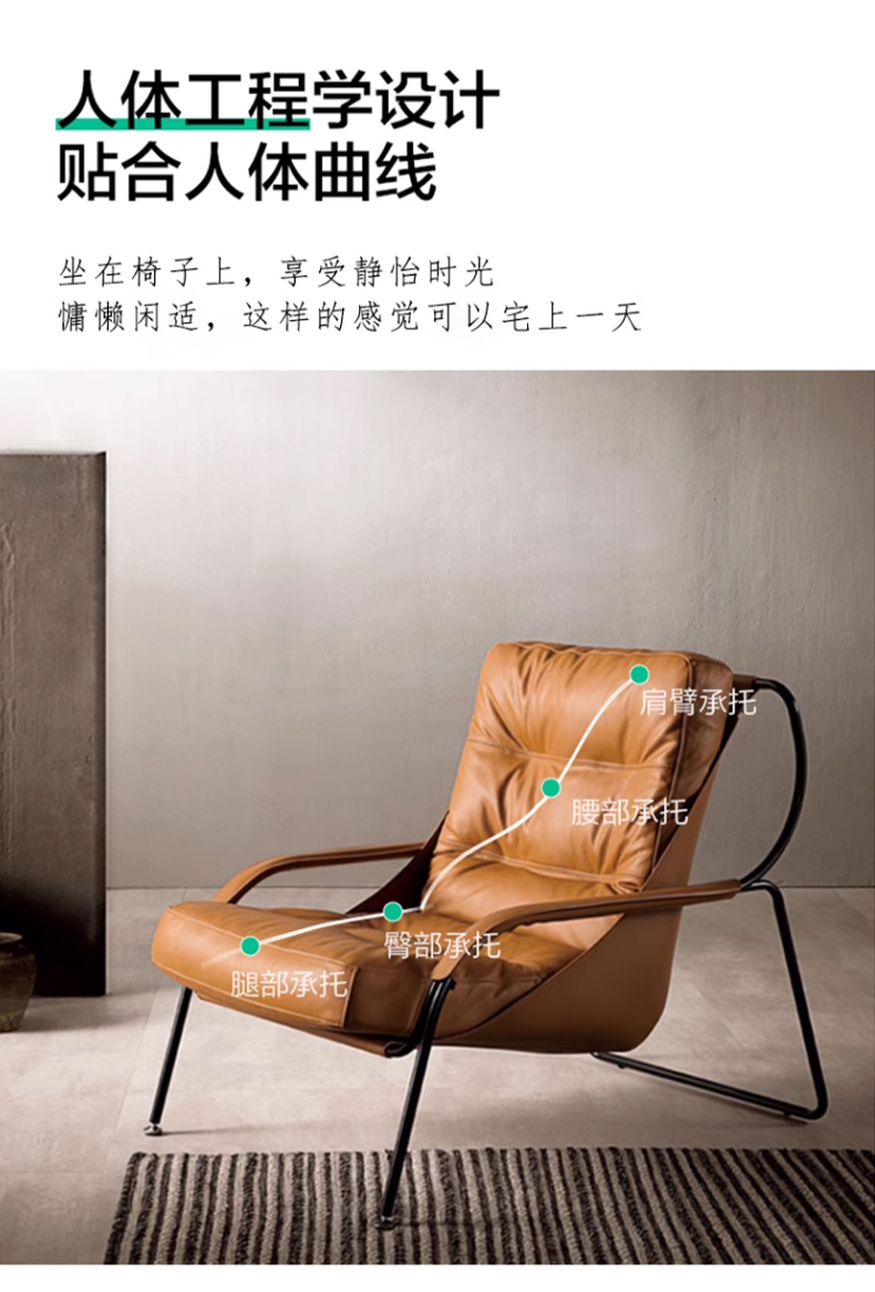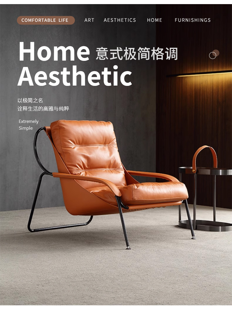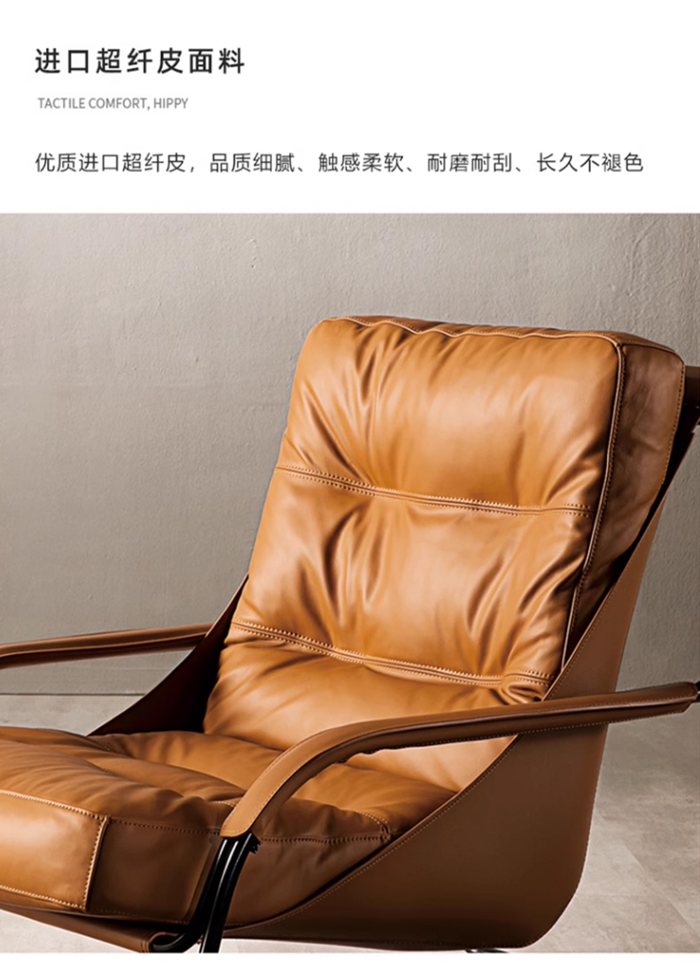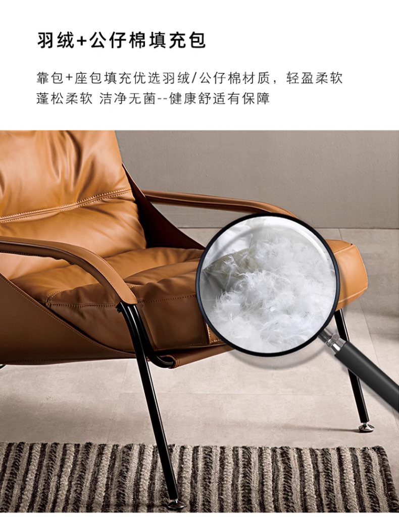 商品名称:千匠一品 意式极简风格 优质超纤皮+马鞍皮+填充羽绒公仔棉+碳素钢脚架 时尚优雅休闲椅YLL79-L