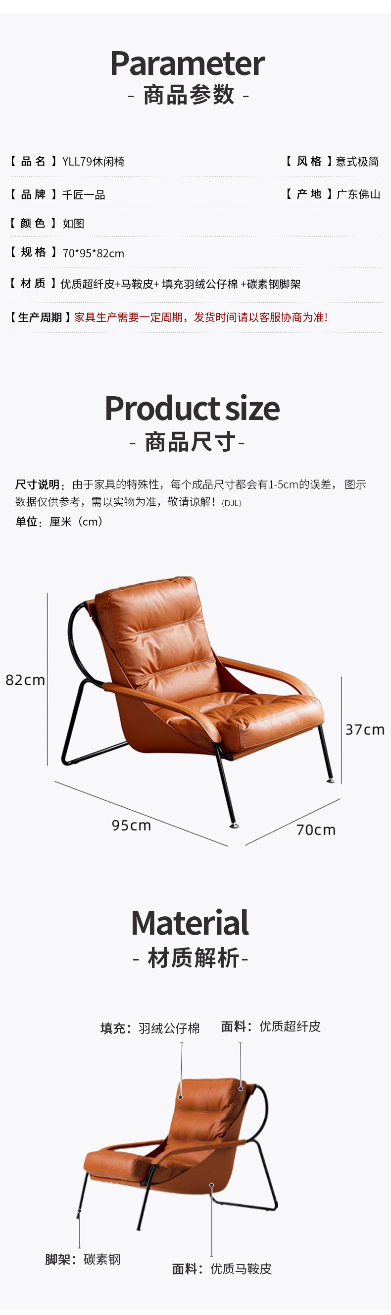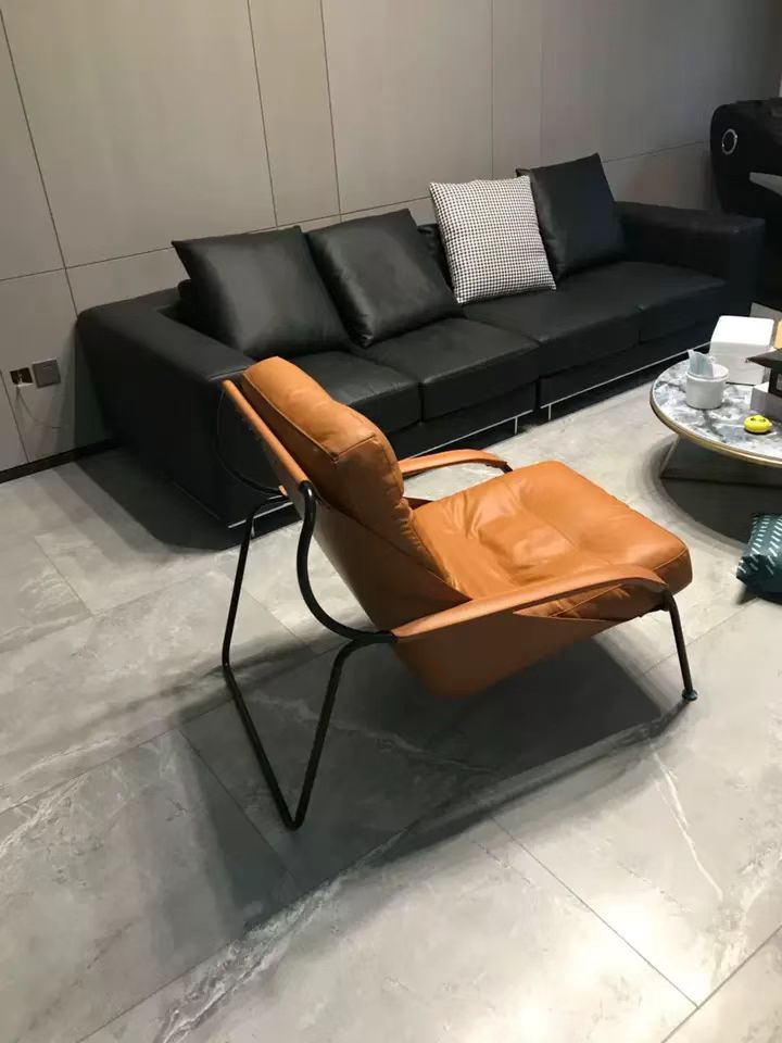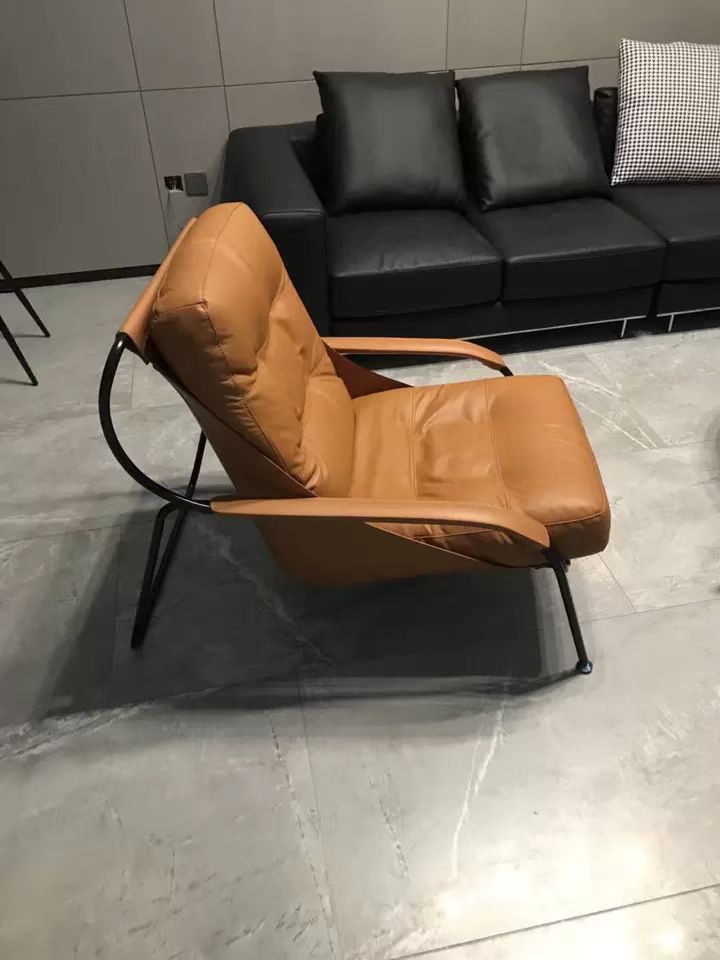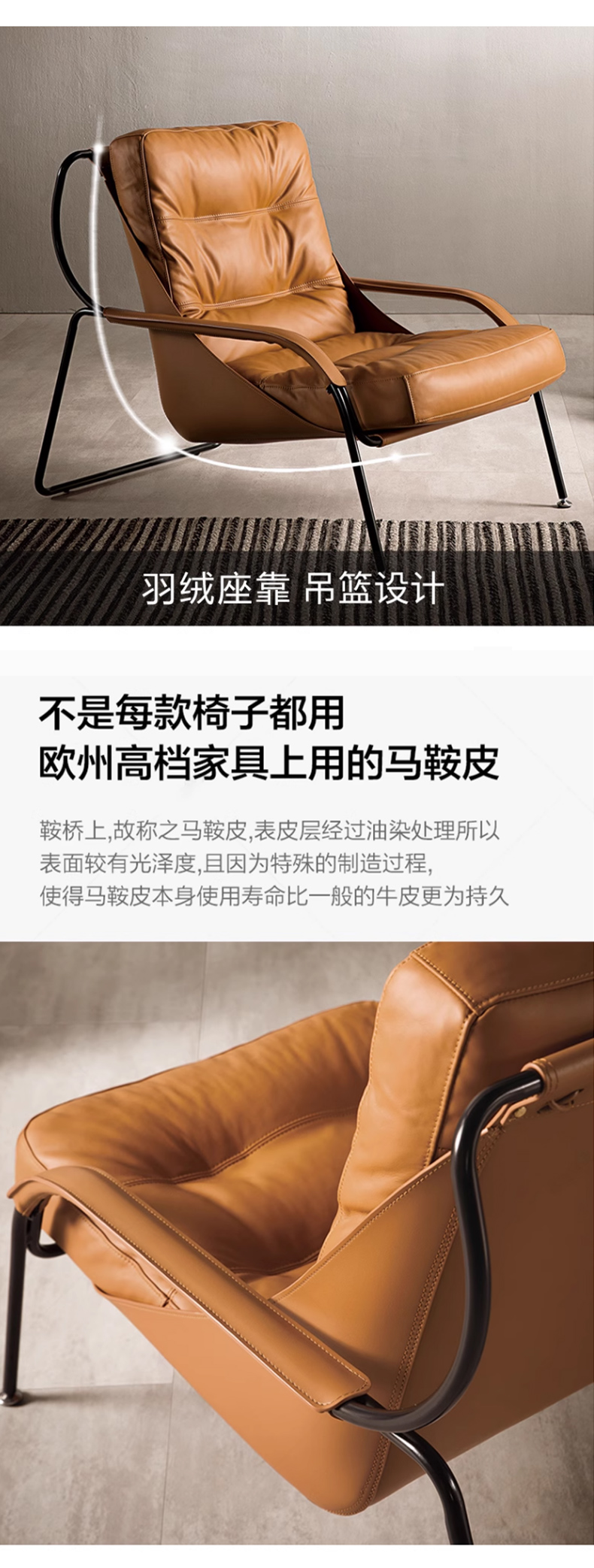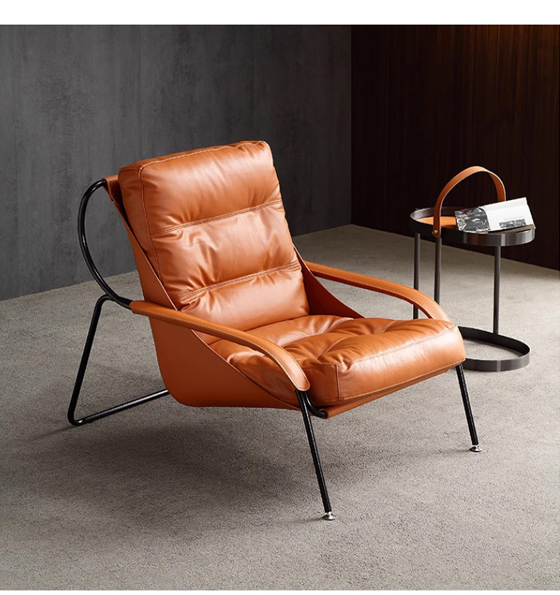 商品名称:千匠一品 意式极简风格 优质超纤皮+马鞍皮+填充羽绒公仔棉+碳素钢脚架 时尚优雅休闲椅YLL79-L