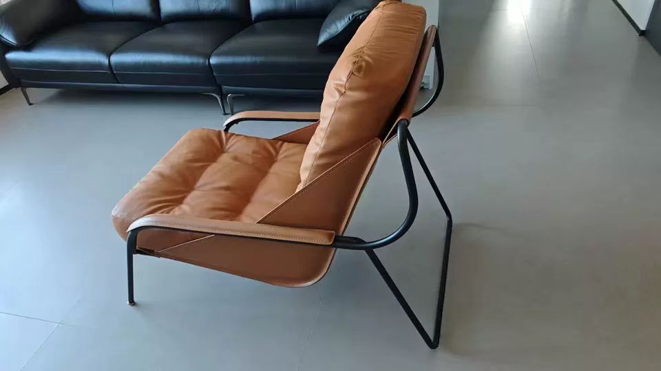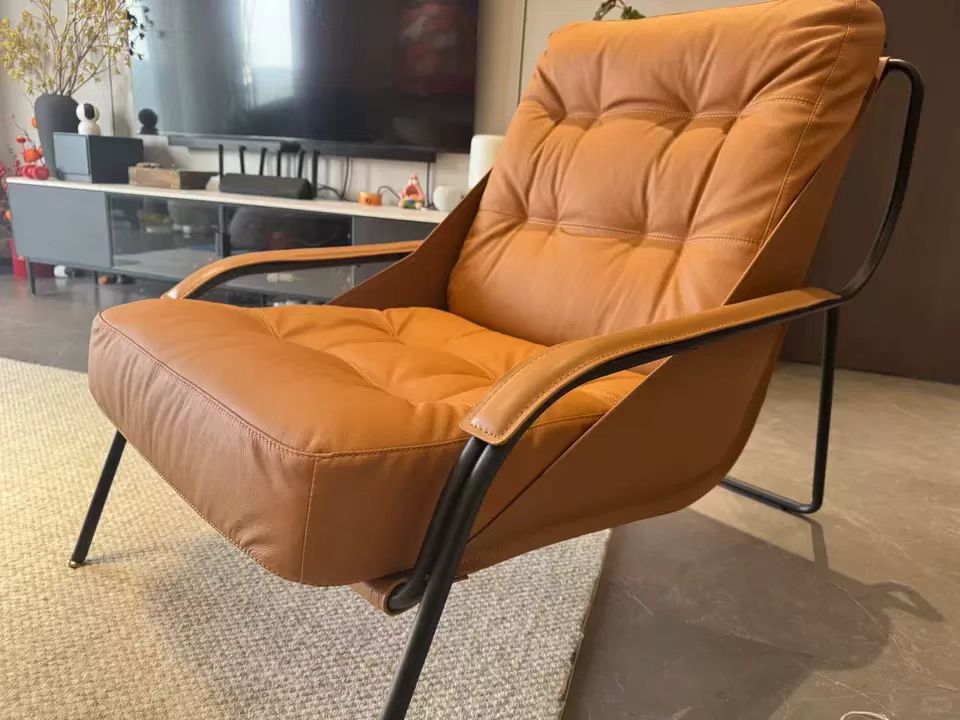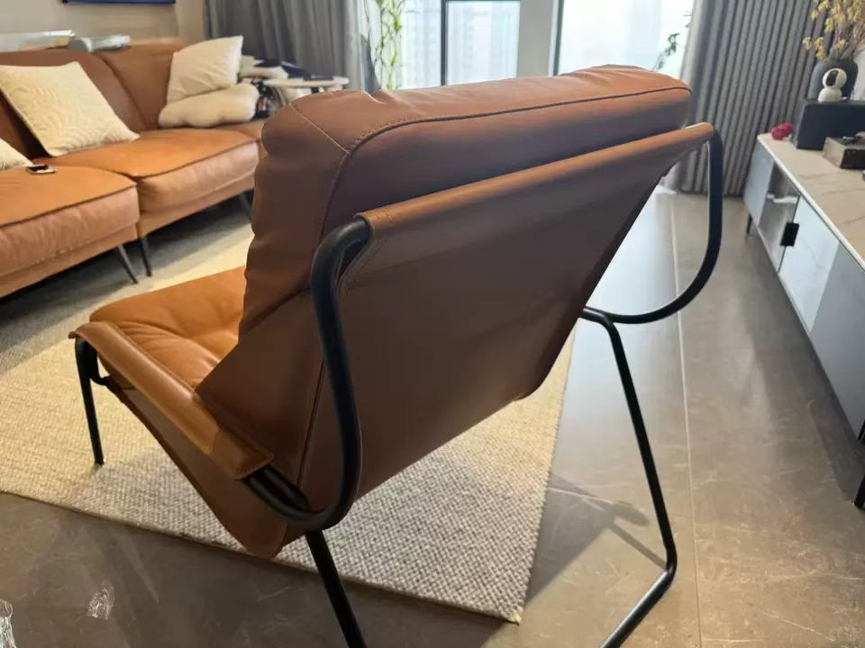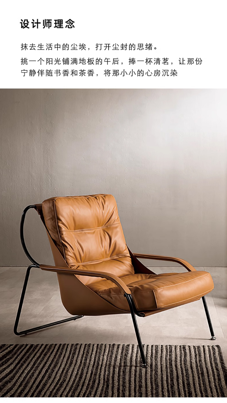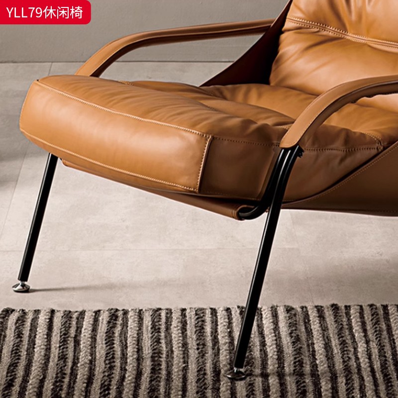 千匠一品 意式极简风格 优质超纤皮+马鞍皮+填充羽绒公仔棉+碳素钢脚架 时尚优雅休闲椅YLL79-L
