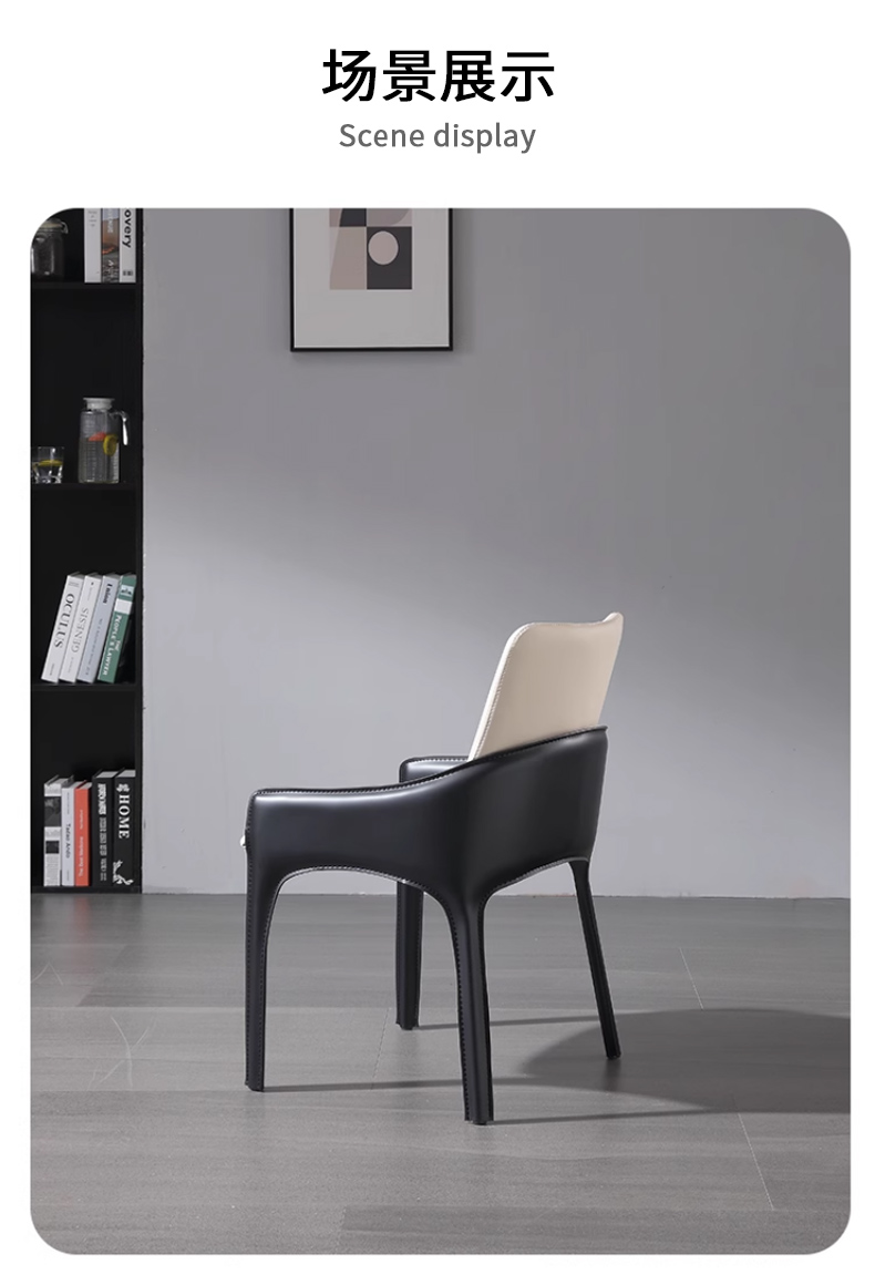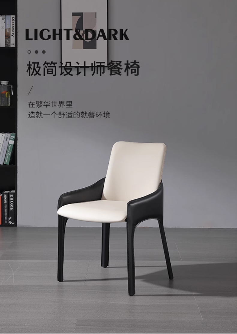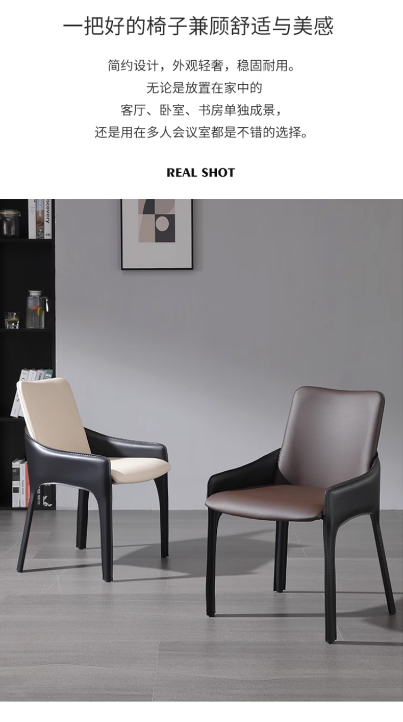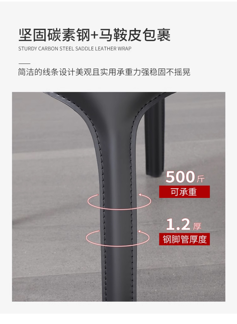 千匠一品 意式极简风格 碳素钢+马鞍皮+西皮 时尚简约餐椅YL-15-J