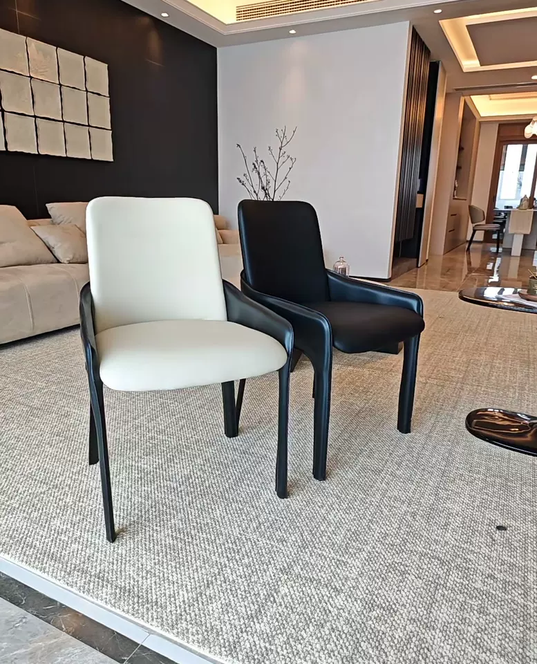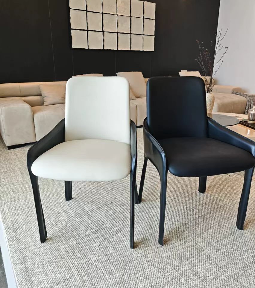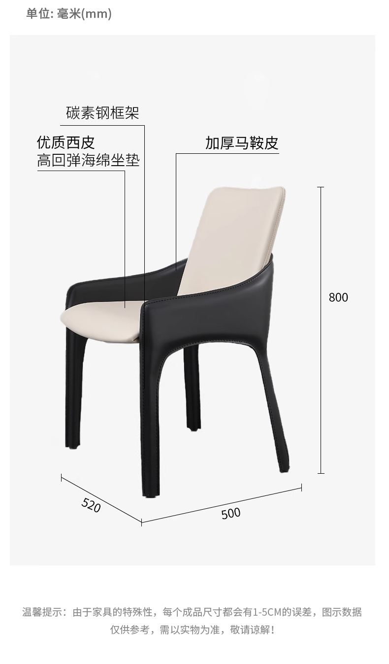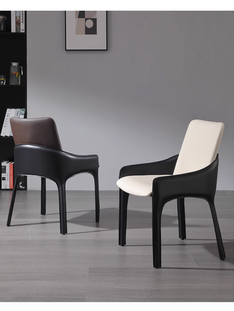 千匠一品 意式极简风格 碳素钢+马鞍皮+西皮 时尚简约餐椅YL-15-J