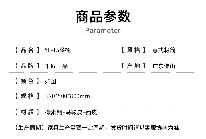 商品名称:千匠一品 意式极简风格 碳素钢+马鞍皮+西皮 时尚简约餐椅YL-15-J
