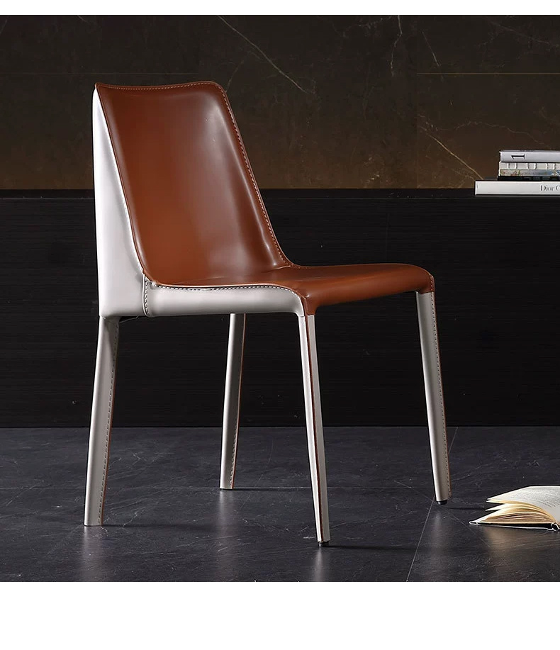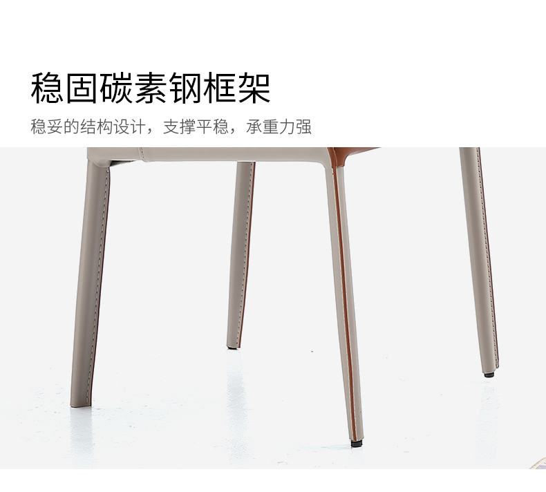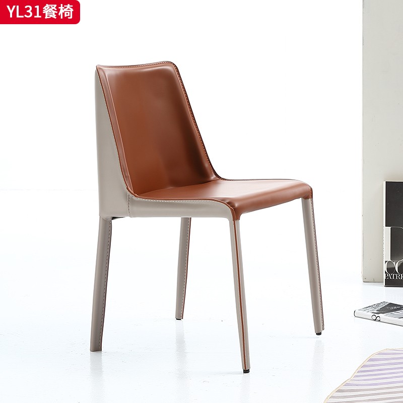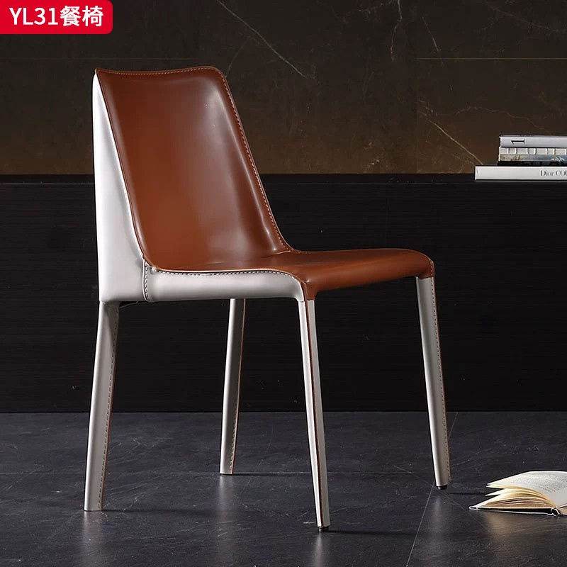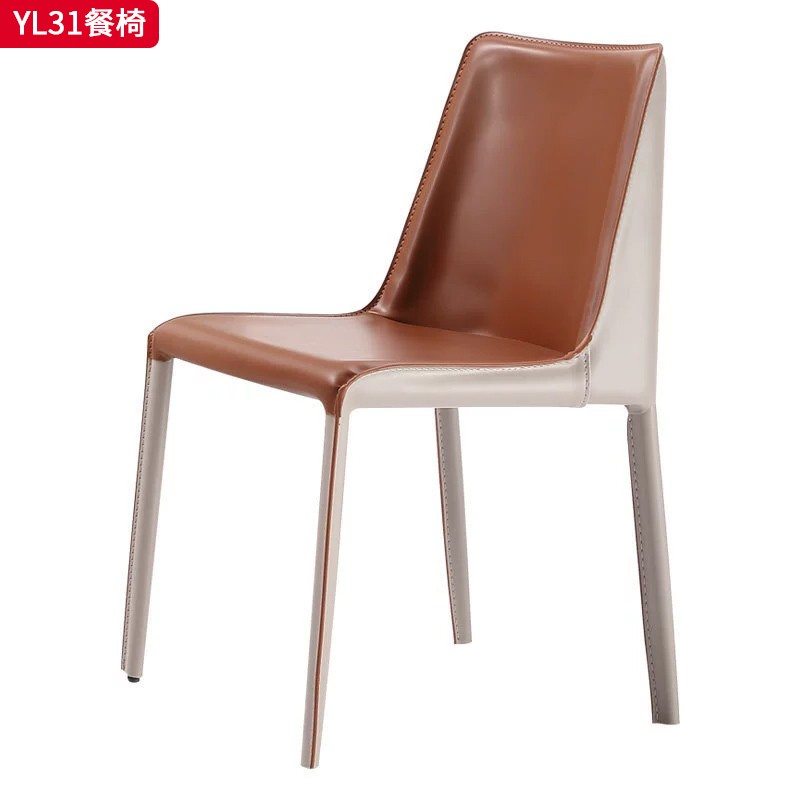 千匠一品 意式极简风格 碳素钢+马鞍皮 时尚优雅餐椅YL31-L