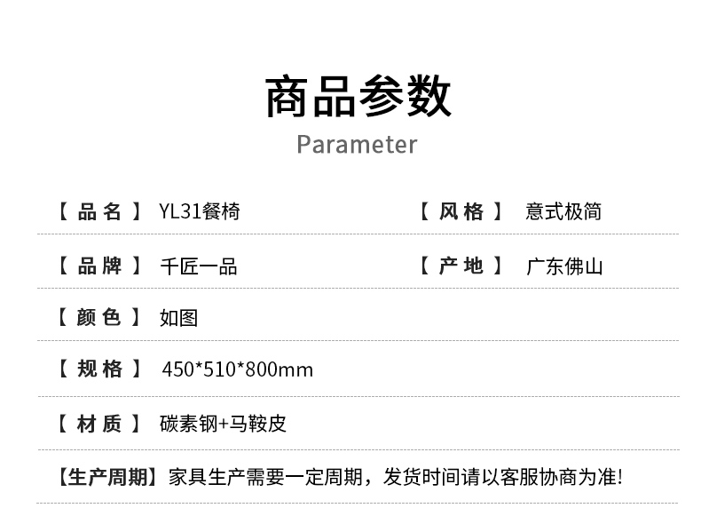 商品名称:千匠一品 意式极简风格 碳素钢+马鞍皮 时尚优雅餐椅YL31-L