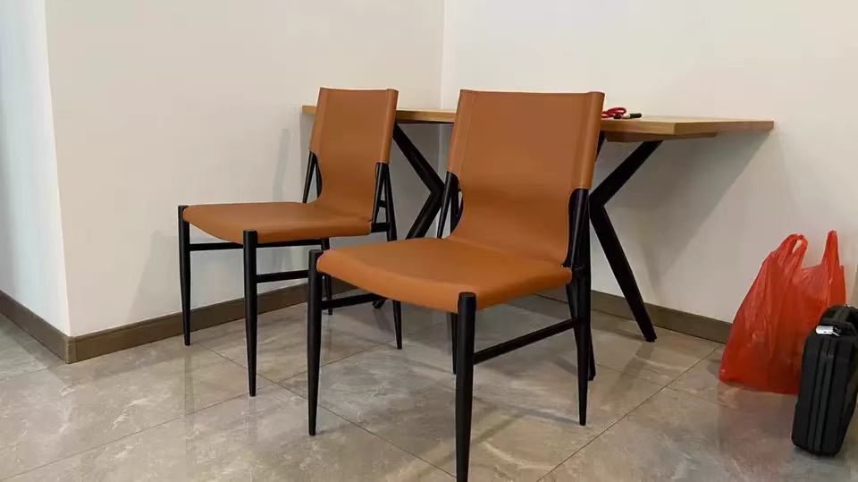 千匠一品 意式极简风格 碳素钢+马鞍皮 时尚优雅餐椅YL37-L