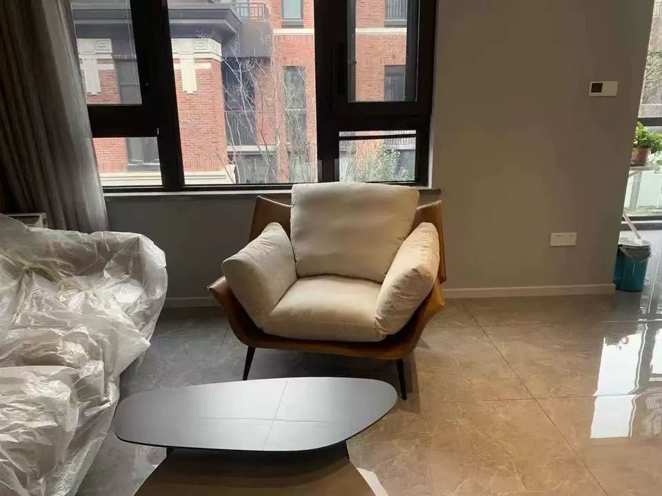 千匠一品 意式极简风格 马鞍皮+优质布艺面料+羽绒乳胶+高密度海绵+碳素钢 时尚优雅休闲椅YL1015-L