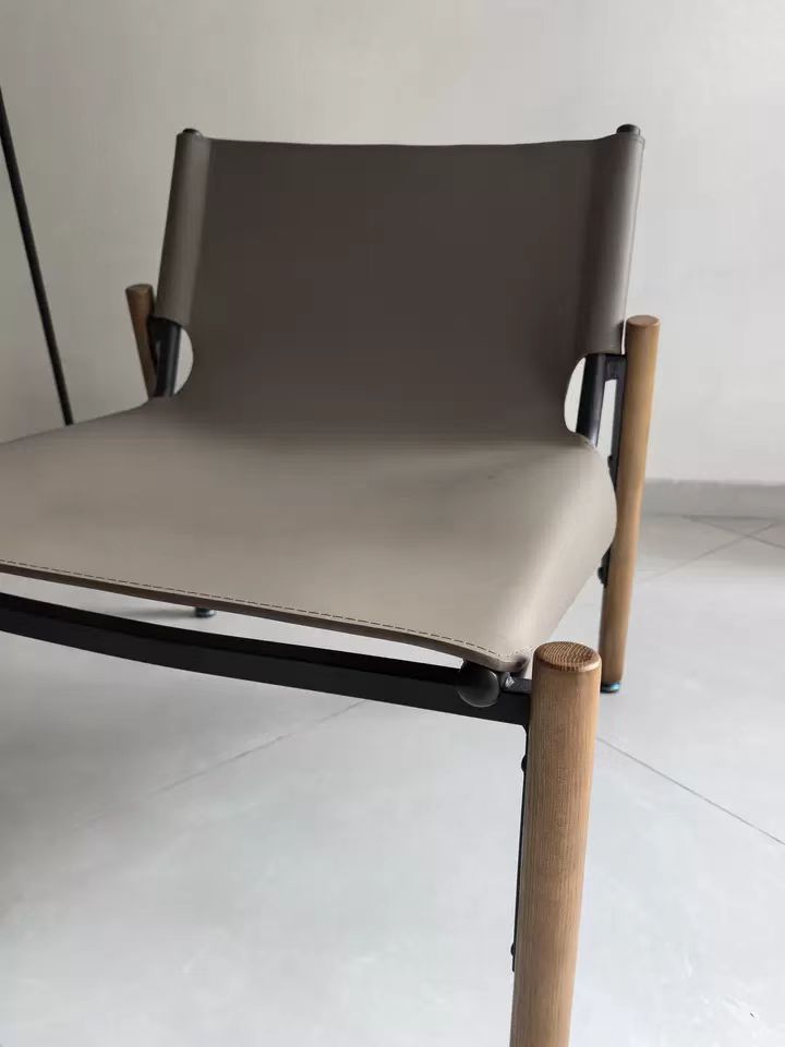 千匠一品 意式极简风格 碳素钢+马鞍皮+白蜡木 时尚简约沙滩椅YL80-J