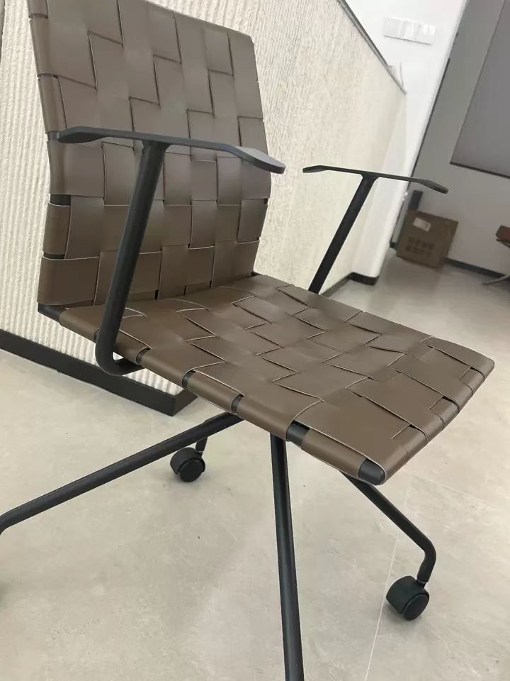 千匠一品 意式极简风格 碳素钢+马鞍皮 时尚简约编织转椅YL81-J