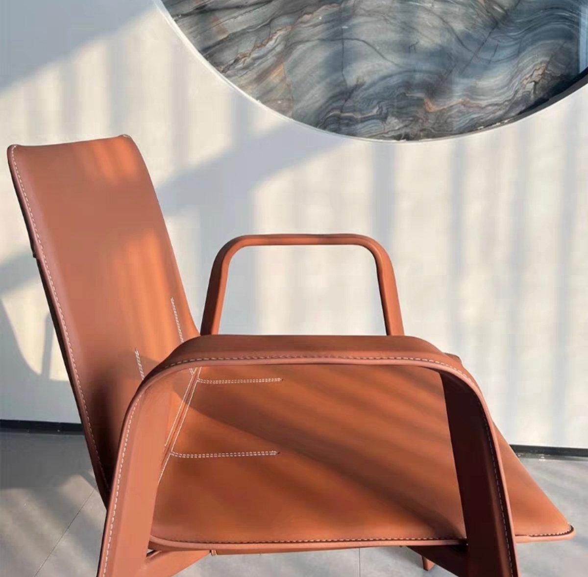 千匠一品 意式极简风格 碳素钢+马鞍皮 时尚简约餐椅YL86-J